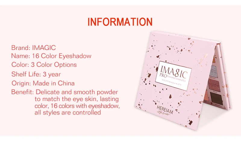IMAGIC 16 цветов Палитра теней для век корейская косметика палитра для макияжа матовые блестящие пигментные тени для век металлические алмазные тени