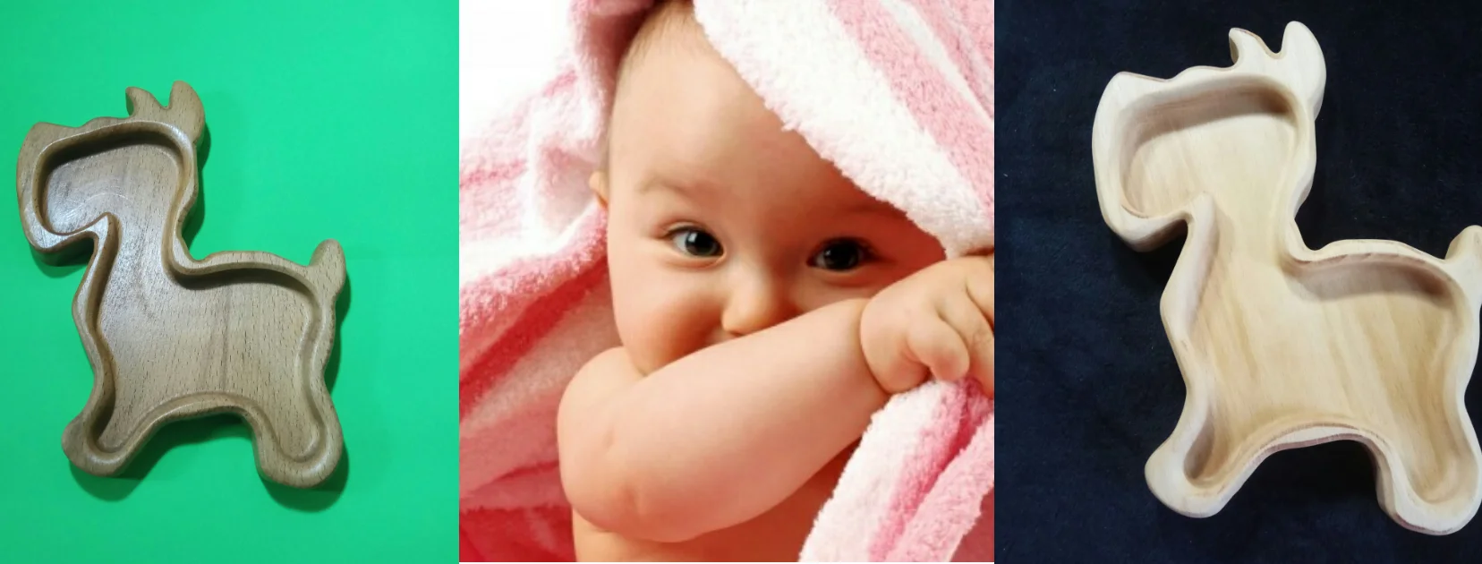 Children's plate for feeding wooden puppy