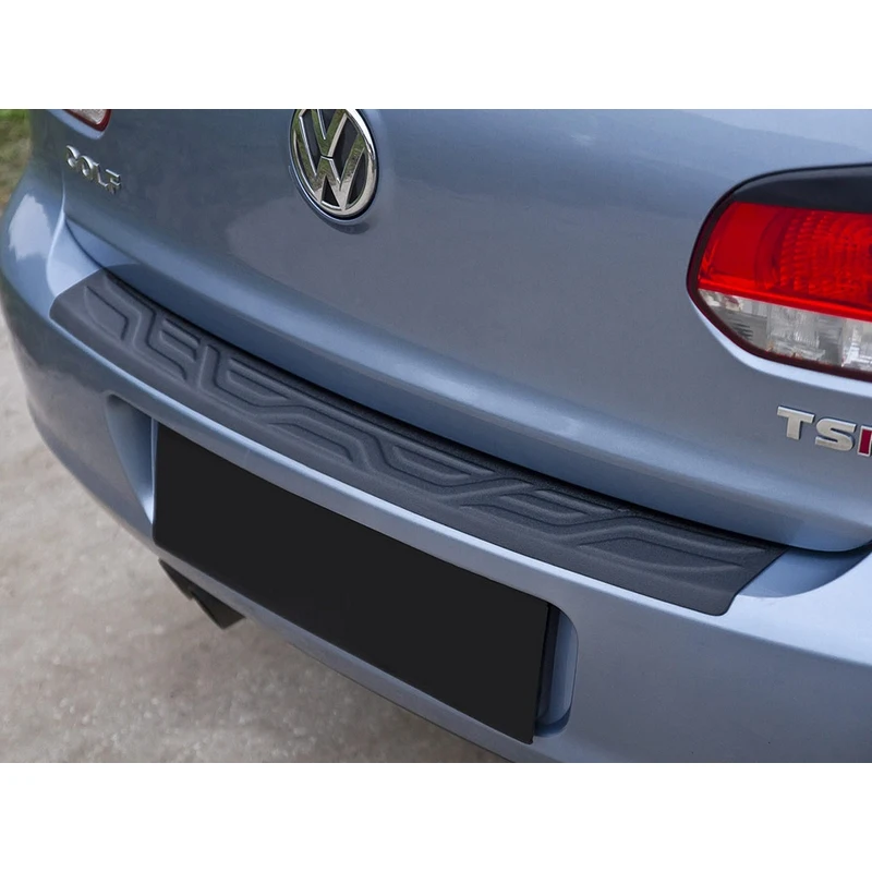 Накладка на задний бампер для Volkswagen Golf VI (Фольксваген Гольф 6) 2009-2012 защищает лакокрасочное покрытие от внешних повреждений, а если верхняя поверхность бампера уже повреждена - скроет царапины и сколы. Изготовлена из АБС-пластика. Поверхность "шагрень".