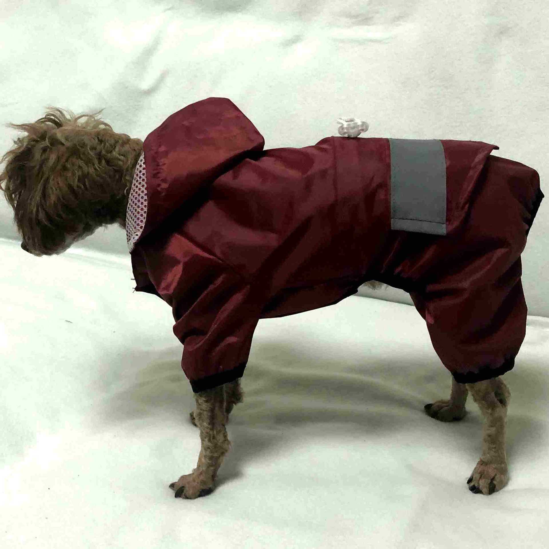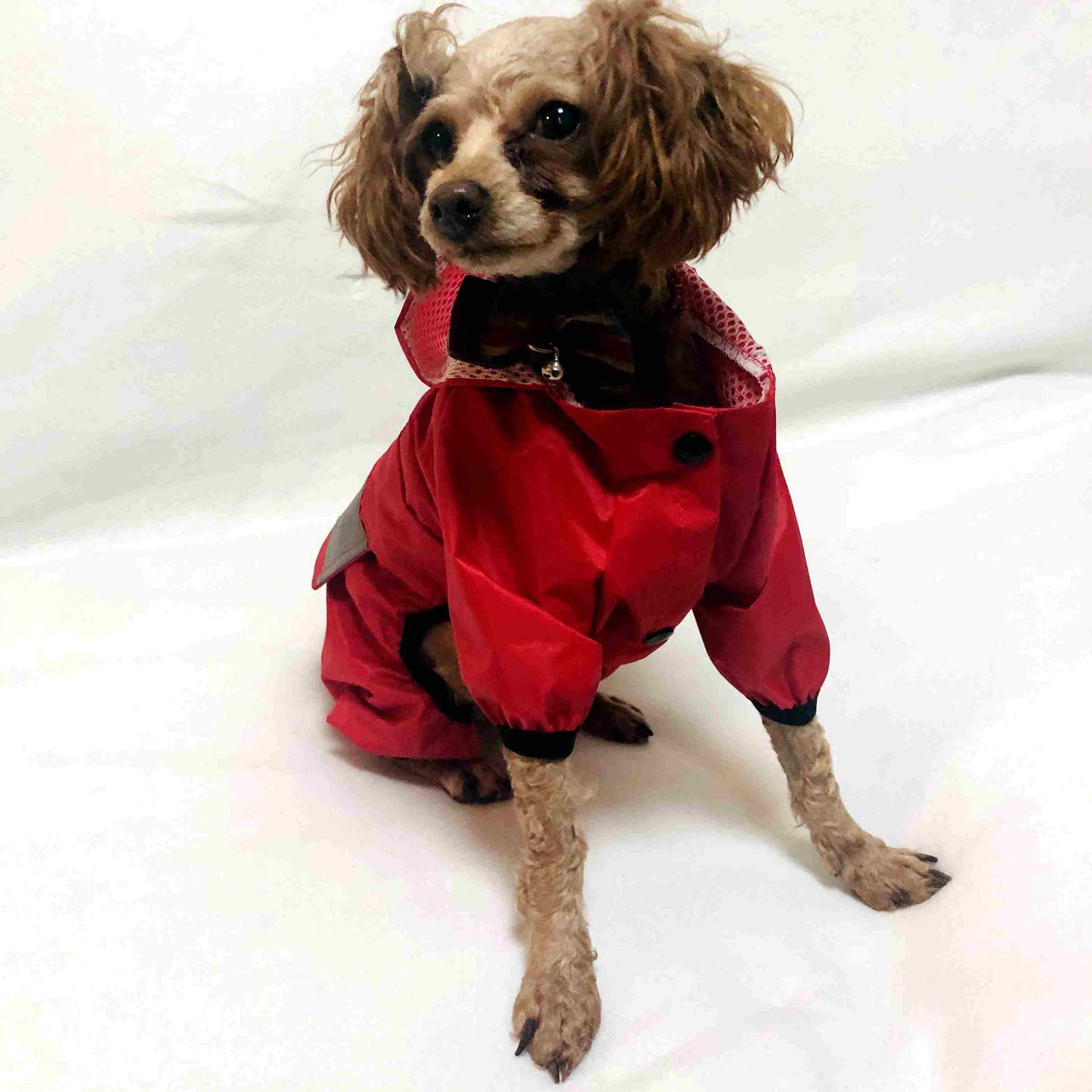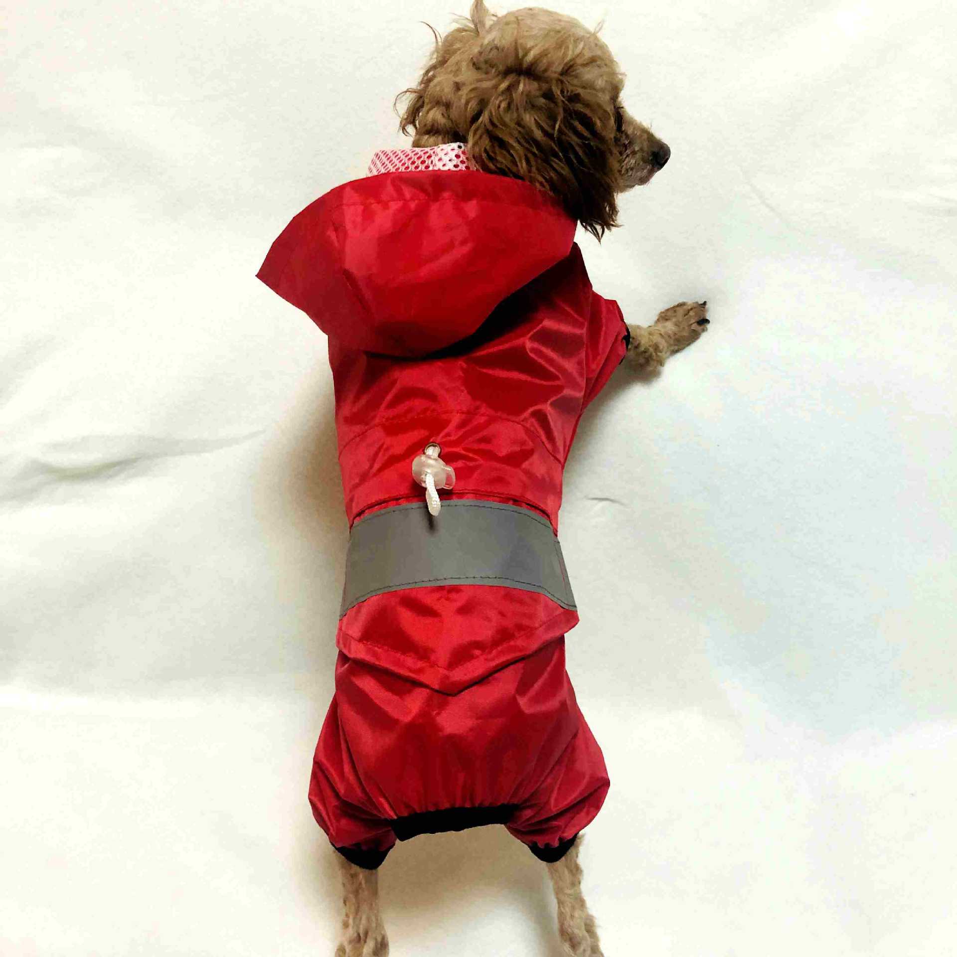 Ветрозащитный и двухслойный дождевик с сеткой внутри и светоотражающими полосками на спине, собаки могут свободно и безопасно путешествовать в дождливые дни снаружи.