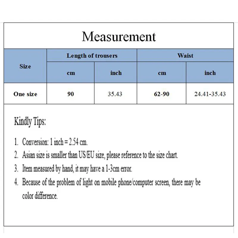 Размер Длина брюк/СмТалия/СмОдин размер9062-90