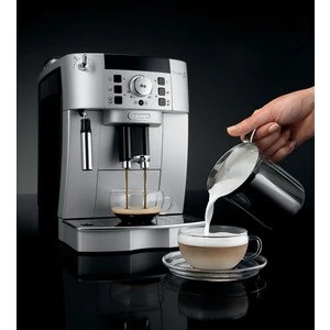 Описание _x000D__x000D_ Автоматическая кофемашина Magnifica S ECAM 22.110 SB оборудована встроенной кофемолкой. Жернова сделаны из стали, что гарантирует прочность и надежность, поэтому устройство прослужит вам долго. Желаемую степень помола можно выбрать из 13 уровней. Контейнер для зерен имеет специальную плотную крышку, которая позволяет сохранять аромат. Если же вам захочется приготовить кофе уже из предварительно молотого кофе, тогда кофемашина легко это сделает._x000D_ _x000D_ Кофемашина оборудована простой и понятной кнопочной панелью управления. Вращением регулятора можно изменить крепость кофе, а нажатие кнопки позволяет выбрать порцию необходимого объема. Так же можно запрограммировать нужную температуру и жесткость воды. _x000D_ _x000D_ Кофемашина имеет традиционный ручной капучинатор. С его помощью вы с легкостью можете приготовить любимый капучино. Для этого необходимо поднести емкость с молоком под капучинатор, и уже через несколько мгновений вы получите взбитую молочную пену._x000D_ _x000D_ Преимущества _x000D__x000D_ _x000D_ Панель управления с иконками _x000D_ Система капучино: смешивает пар, воздух и молоко для получения нежной взбитой пены для капучино _x000D_ Настройка всех параметров напитка: количество воды на чашку, крепость, температура _x000D_ Возможность настроить "мой кофе" _x000D_ Использование как кофейных зерен, так и молотого кофе _x000D_ Приготовление двух чашек кофе за одно заваривание _x000D_ Съемный компактный блок приготовления вместимостью от 6 до 14 г _x000D_ Долговечная кофемолка с регулировкой до 13 степеней помола _x000D_ Программируемое количество кофе на порцию _x000D_ Программируемое количество воды на порцию _x000D_ Предварительное смачивание _x000D_ Возможность установки кофейных чашек высотой от 86 до 142 мм _x000D_ Программируемое автоматическое включение и выключение _x000D_ Счетчик приготовленных чашек _x000D_ Новый термоблок гарантирует эспрессо идеальной температуры _x000D_ Контейнер для кофе, сохраняющий аромат _x000D_ Контейнер для жмыха на 14 порций с индикацией наполненности _x000D_ Съемный резервуар для воды с индикатором уровня воды (1,8 л) _x000D_ Фильтр для воды _x000D_ Автоматическое ополаскивание и программа очистки от накипи _x000D_ Настраиваемая жесткость воды _x000D_ Съемный поддон для капель с индикатором уровня воды _x000D_ Подогрев чашек _x000D_ Функция энергосбережения _x000D_ Режим ожидания _x000D_ Быстрое приготовление капучино _x000D_ Полное отключение питания для нулевого энергопотребления _x000D_ _x000D__x000D_ Применение _x000D__x000D_Позволяет приготовить любой тип кофе простым нажатием кнопки. Простое вращение ручки позволяет увеличить или уменьшить крепость кофе. Нажатием кнопки можно выбрать маленькую или большую порцию_x000D__x000D_ Технические характеристики _x000D__x000D_ _x000D_ Размеры (ШxГxВ см): 23,8x43,0x35,1 _x000D_ Вес (Кг): 9 _x000D_ Напряжение/Частота переменного тока (В~Гц): 220/240~50/60 _x000D_ Потребляемая мощность (Вт): 1450 _x000D_ Цвет: Серебряный и черный _x000D_ _x000D__x000D_Информация с сайта производителя.