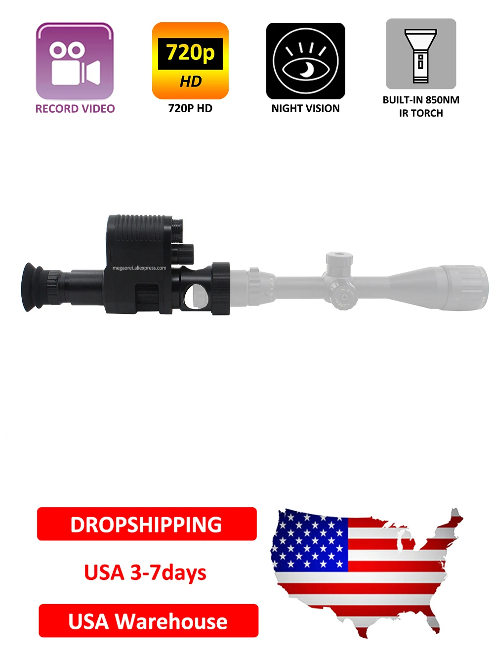 Видеокамера Megaorei3 LEOPARDS3 M3NV007A-это светильник, устанавливаемый сзади, с прицелом ночного видения, который позволяет быстро и легко преобразовать ваш дневный прицел в современный прицел ночного видения для близкого и дальнего охотничьего дня или ночью. Не нужно посвящать винтовку ночному видению, видеокамера Megaorei3 обеспечивает высокотехнологичное решение. Просто прикрепите на заднюю часть ружья, мгновенно преобразуя его в ночное видение.