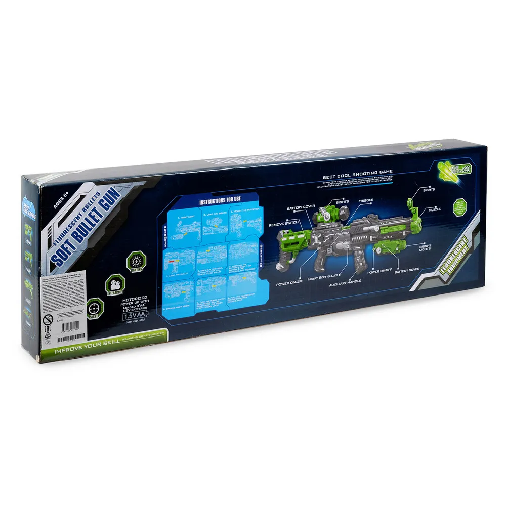 Игровой набор "Зелёное оружие: Винтовка Z-75" - это детское оружие размером 75 сантиметров, которое стреляет мягкими и безопасными патронами. В винтовке предусмотрена встроенная обойма, куда помещаются все патроны - игрушка автоматически перезаряжается. Обойма оснащена подсветкой. Также на ствол винтовки крепится фонарик, обеспечивая хорошую видимость в темноте.