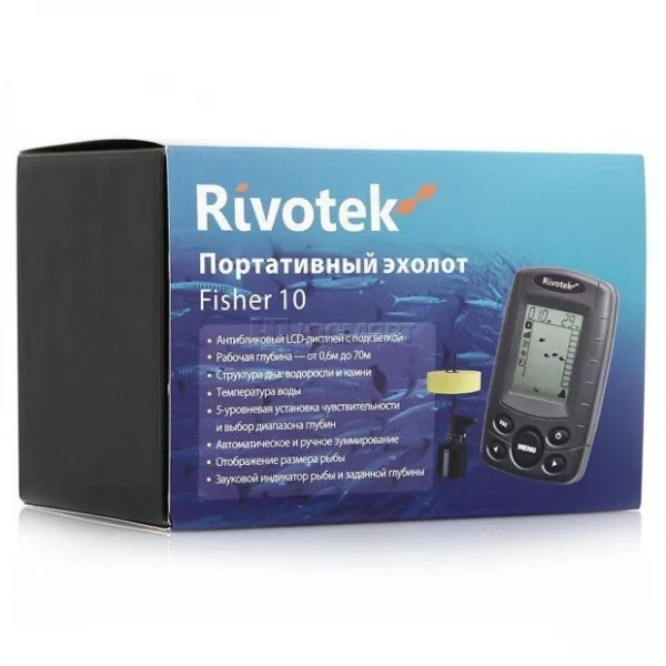 Fisher 10 single beam (20 °, 200 kHz) portable entry level echo sounder. Will show the temperature of water, depth and presence of fish. Suitable for summer and winter fishing.