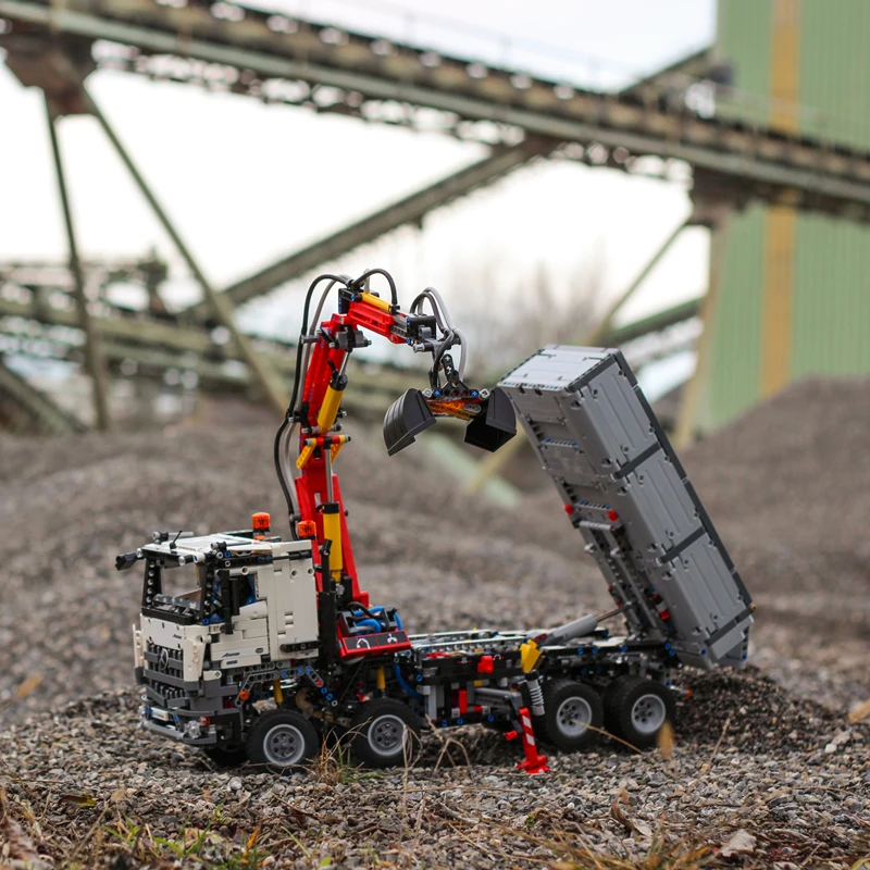 20005 техника экскаватор мощность arocs строительные блоки для грузовиков с моторный пульт дистанционного управления land...