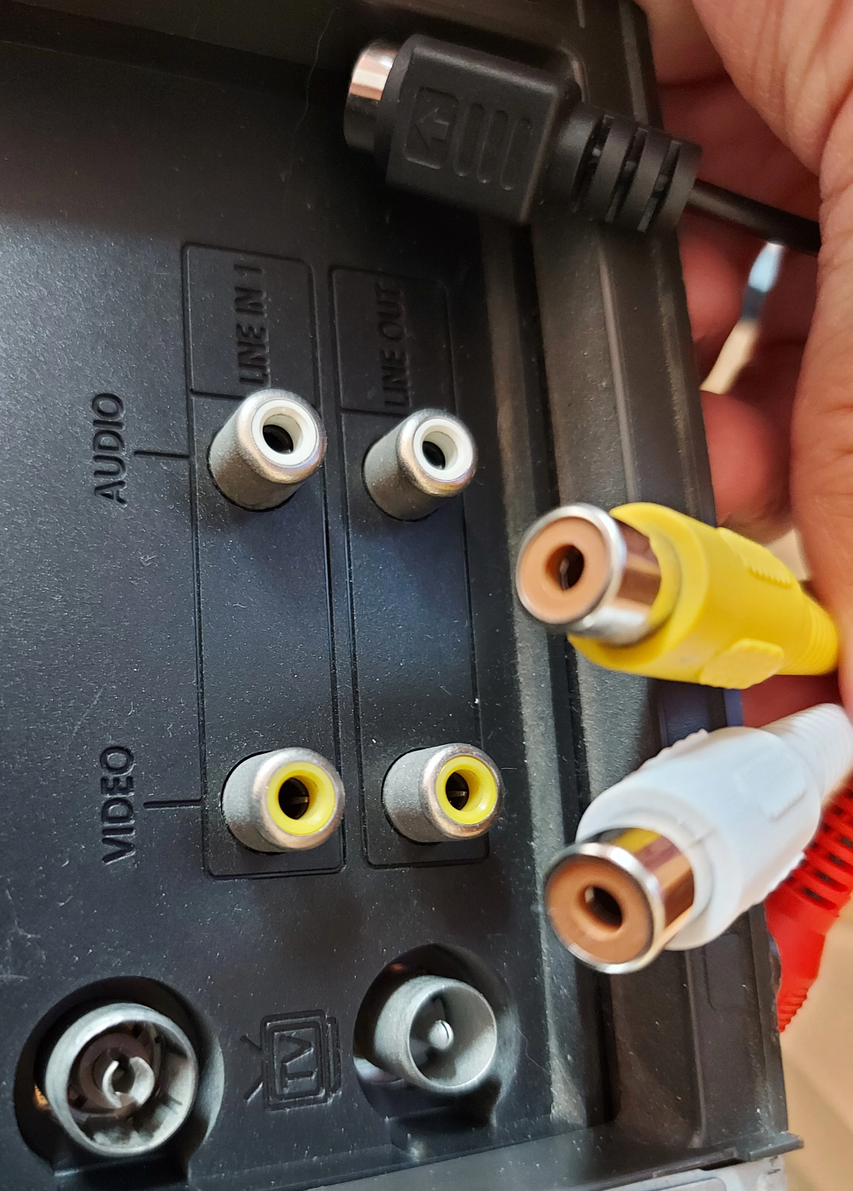 Устройство оснащёно выведенными разъемами для подключения RCA-кабелей (тюльпанчики) и разъемом для подключения S-Video. Каждый провод подписан небольшой меткой