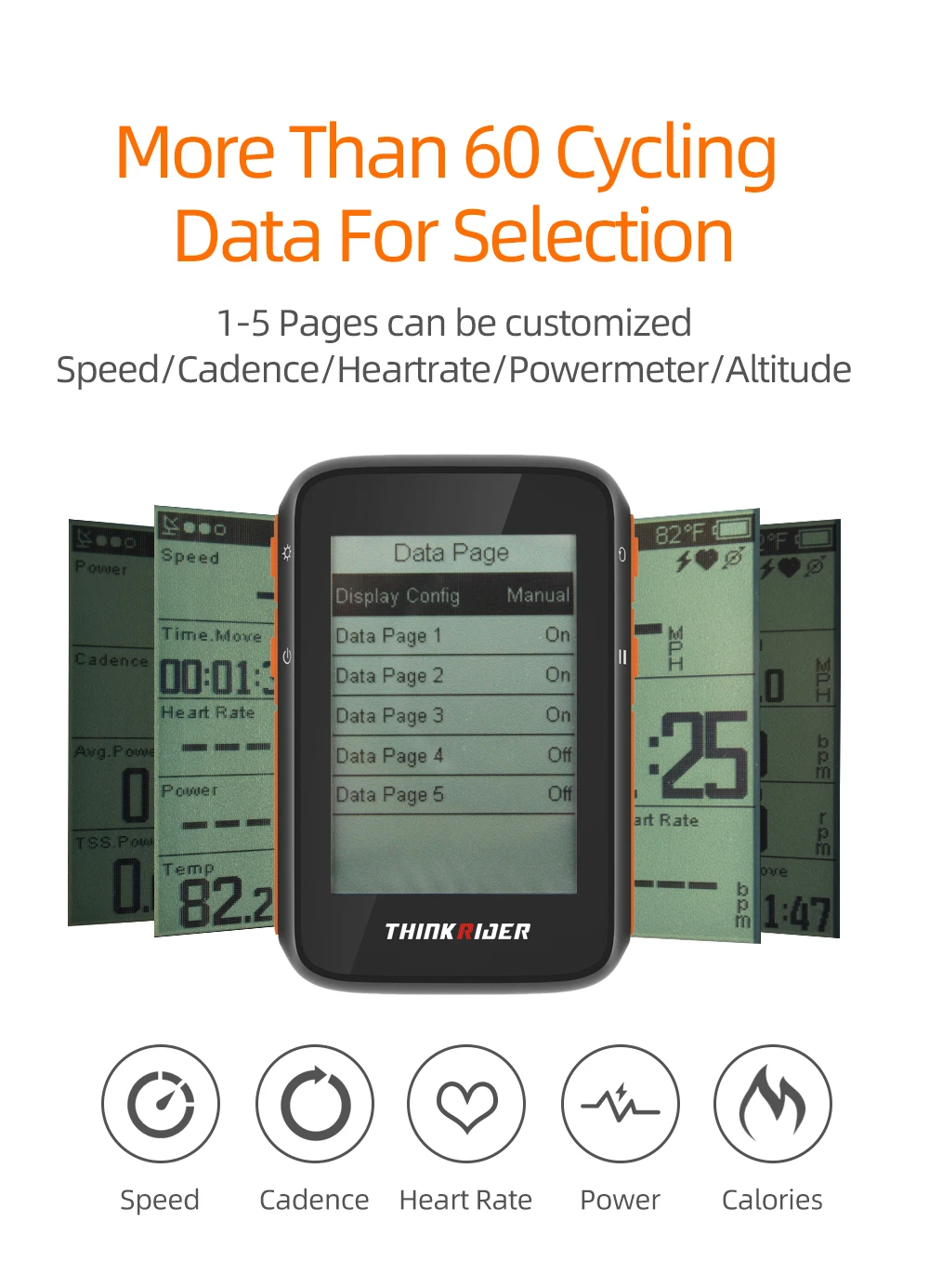 1-5 страниц могут быть настроены Скорость/Cadence/Heartrate/измеритель мощности/высота