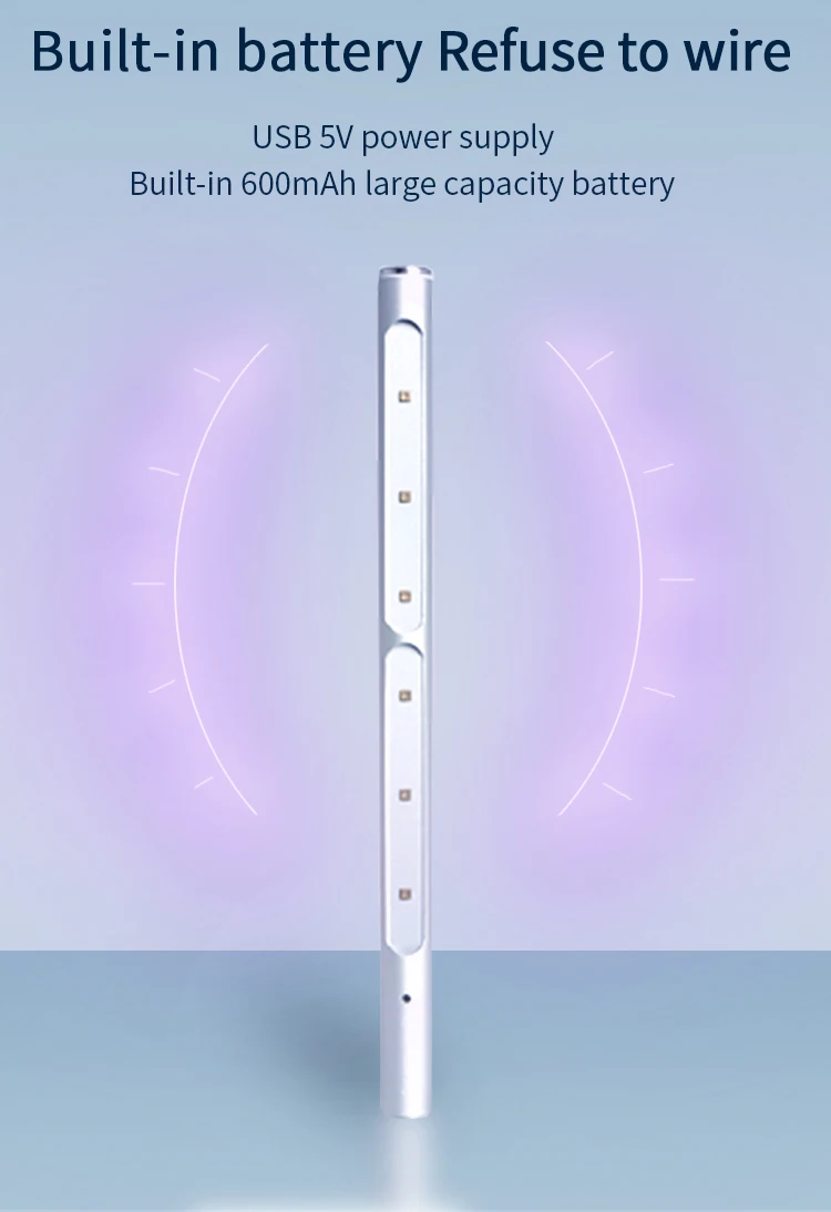 Портативный светильник UVC, дезинфицирующая лампа, заряжаемая для дома, для путешествий в отеле, убивает 99% микробов, вирусов и бактерий