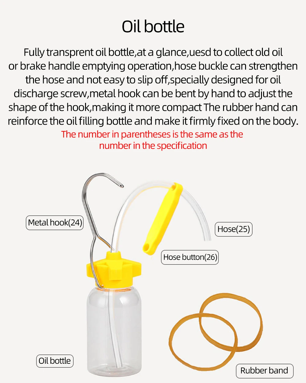 Полностью прозрачная бутылка для масла, с первого взгляда, uesd для сбора старого масла или тормозной ручки опорожнения операции, шланг пряжка может укрепить шланг и не легко соскальзывать, специально разработан для масла винт для сброса, металлический крюк Может быть согнута вручную, чтобы отрегулировать форму крючка, что делает его более компактным, резиновая рука может укрепить бутылочку для наполнения масла и сделать ее прочно закрепленной на корпусе. Количество в скобках совпадает с номером в спецификации