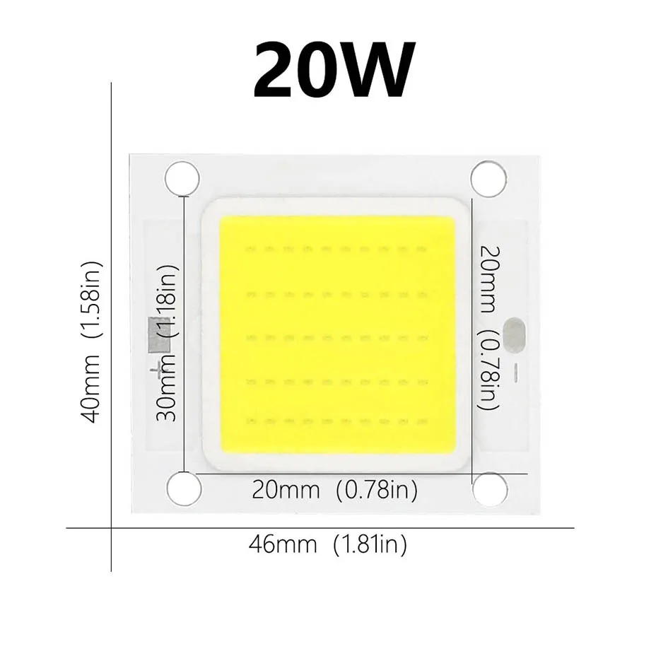 Размер излучающей светильник поверхности: 20*20 мм (0,78*0,78 дюйма)