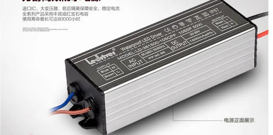 Совершенно новый и высокое качество подходит для светодиодов высокой мощностиТрековый светильник/Светильник /Прожекторы/ ПрожекторыСветодиодный трансформатор драйвераХарактеристики: Уровень водонепроницаемости: IP67, CE RohsТок: 1500ма, Выходная мощность: 50 ВтВход: 90-260v 50/60HzВыход: 18-36 В постоянного токаРазмер: 114X37X30 ммЧехол: Алюминиевый ЧехолPFC:> 0,96Эффективность:>90%Посылка: розничная упаковка в белой коробкеВес: 280 г/шт.Защита от перегрева, Защита от короткого замыкания