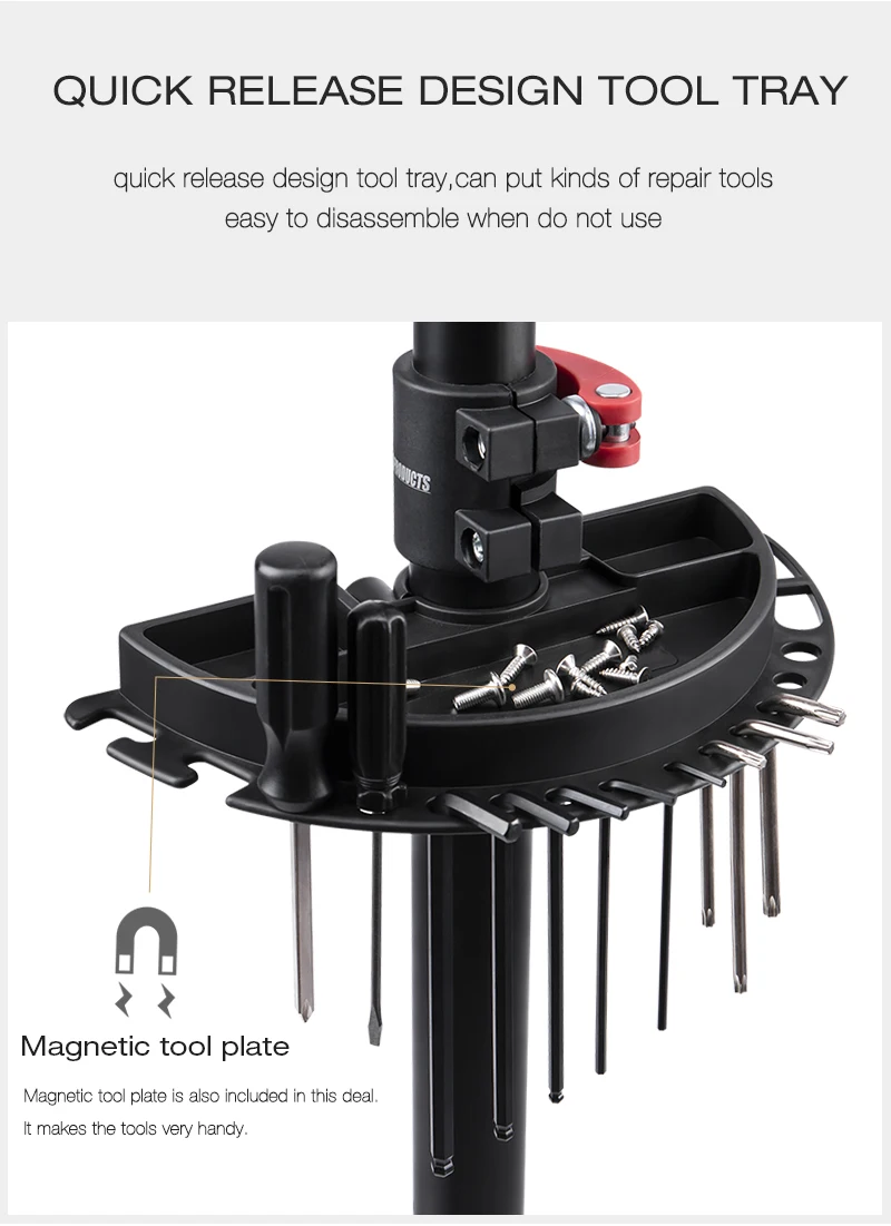 -2 прочные стальные ножки обеспечивают баланс, который вы ожидаете при работе с велосипедной ремонтной стойкой, с меньшим количеством препятствий на вашем пути и возможностью работы в более плотных помещениях