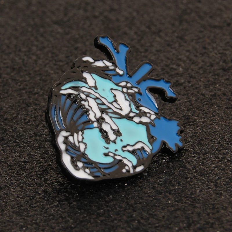 Модные новые булавки морей и океанов, броши с сердечком, креативные значки, синяя волна, эмаль, булавка, коллекция, подарок