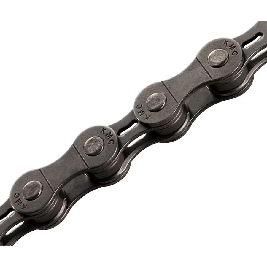 Цепь Z6 KMC 1/2" x 3/32", для горных велосипедов, конструкция без втулок, фаски на внутренних пластинах, оптимизирована для 6-и скоростных кассет, 110 звеньев с замком CL373.