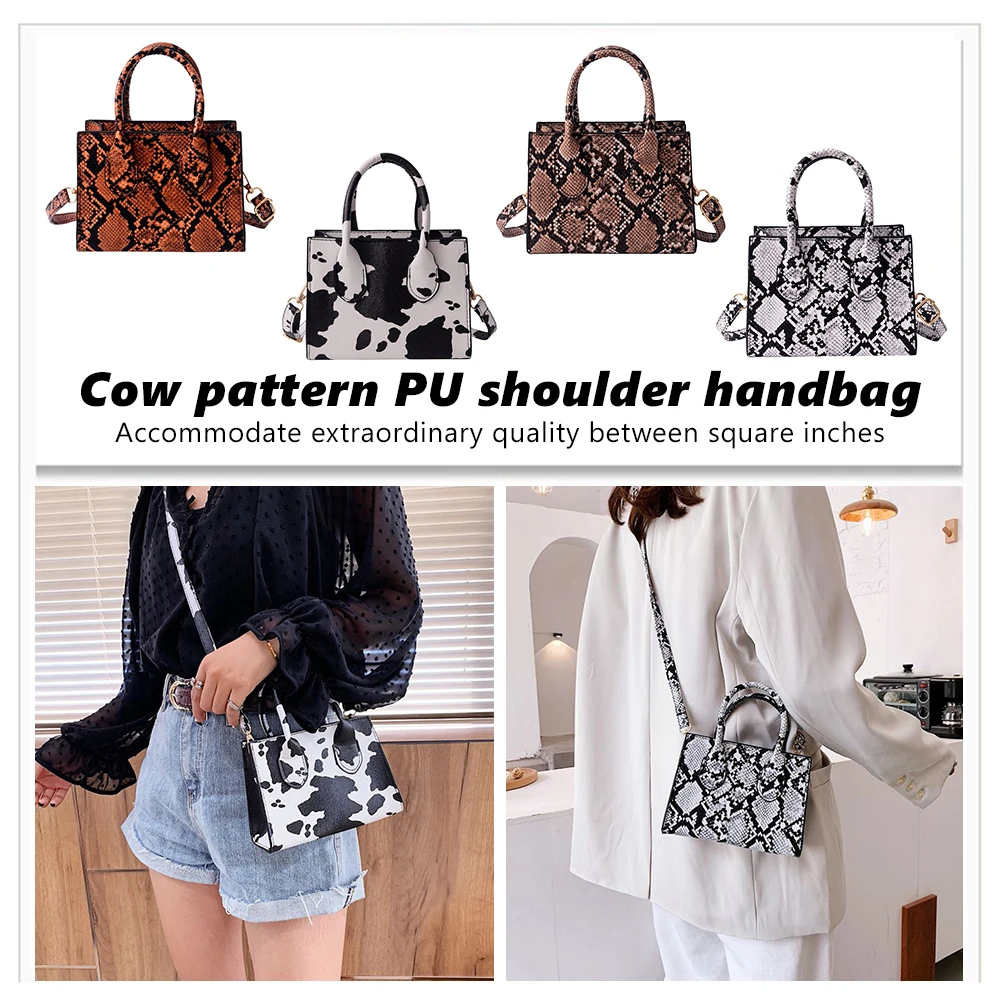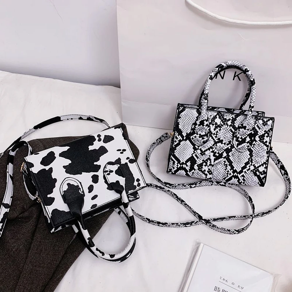 Модная сумка через плечо с принтом змеиной коровы, женская модная повседневная сумка из искусственной кожи, Портативная сумка через плечо с ручкой, Женская дорожная сумка-мессенджер
