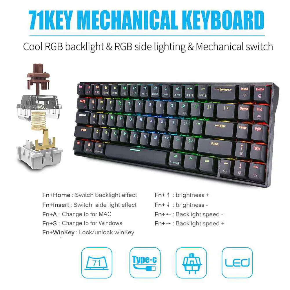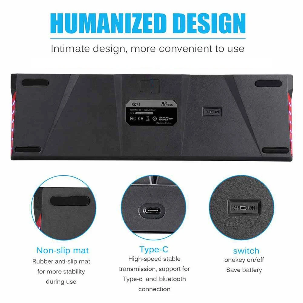 RK71 Беспроводная Bluetooth 71 клавиши RGB подсветка игровая механическая клавиатура для ПК