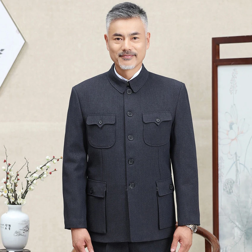 Традиционный китайский костюм Тан для мужчин, куртка, пальто новый год, праздник весны, туника, костюм Чжуншань Мао, Блейзер, Вязаный топ с карманами