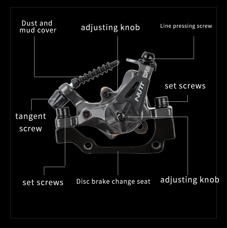 ① Ослабьте винты и установите задний суппорт На кронштейне дискового тормоза велосипедной рамы. Замок Винт, проверьте, что часть суппорта может двигаться Свободно. ② После фиксации тормозного кабеля убедитесь, что излишки линий не превышают, пожалуйста, отрежьте.