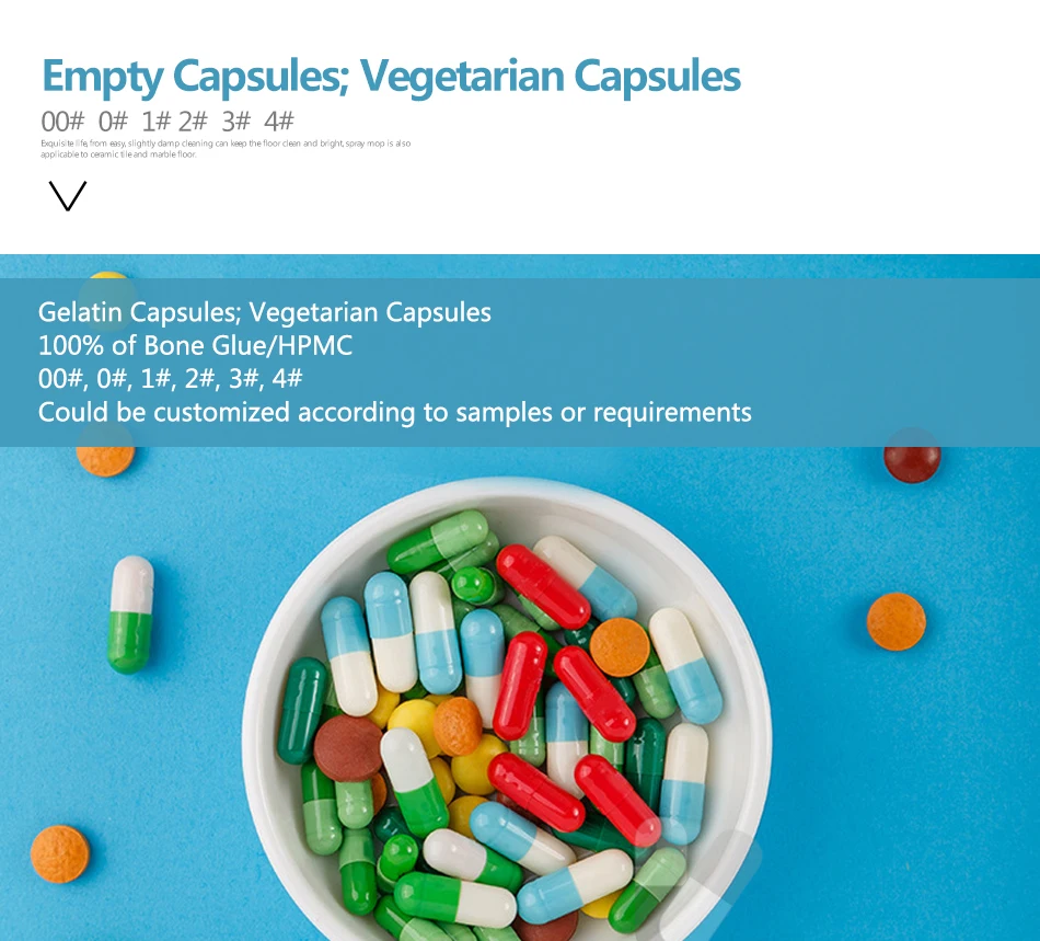 Может быть в разрезе или в комплекте Клиент может отметить заказ Название желатиновой капсулы Материал: 100% костяной клей Содержание тяжелых металлов <40-50ppm Без консервантов Температура хранения 10-25 ℃ Низкая температура ломкий сломанный Высокотемпературное гибкое размягчение Влажность хранения 35-65% Скорость наполнения 99.9% Подходит для толпы, кроме вегетарианского иудаизма ислам Срок годности 24 месяца