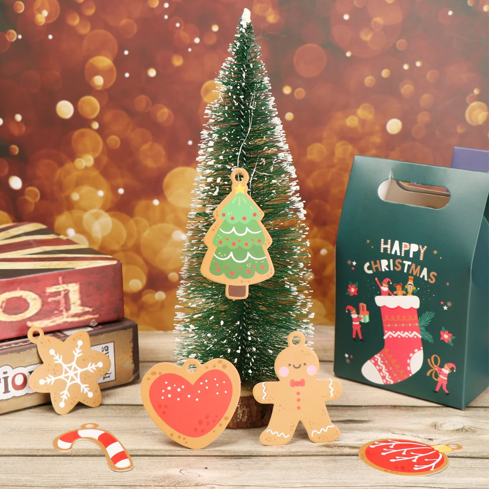 Горячие 50 шт Рождественский Подарочный ярлык Снежинка Пряничный человек конфеты бумажные бирки карты орнамент с рождественской елкой Подарочная коробка Декор бирки Висячие карты
