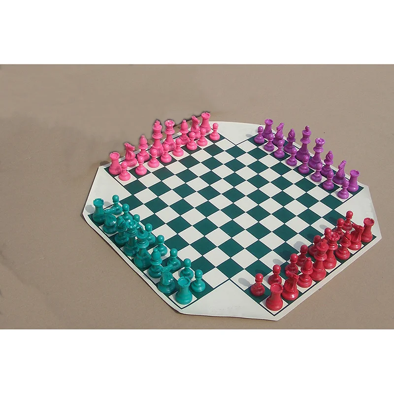Шахматы для четырех игроков, 60 см, шахматная доска из ПВХ, шахматная доска высотой 97 мм, шахматные фигуры на 4 человека, средневековые игры для шашек