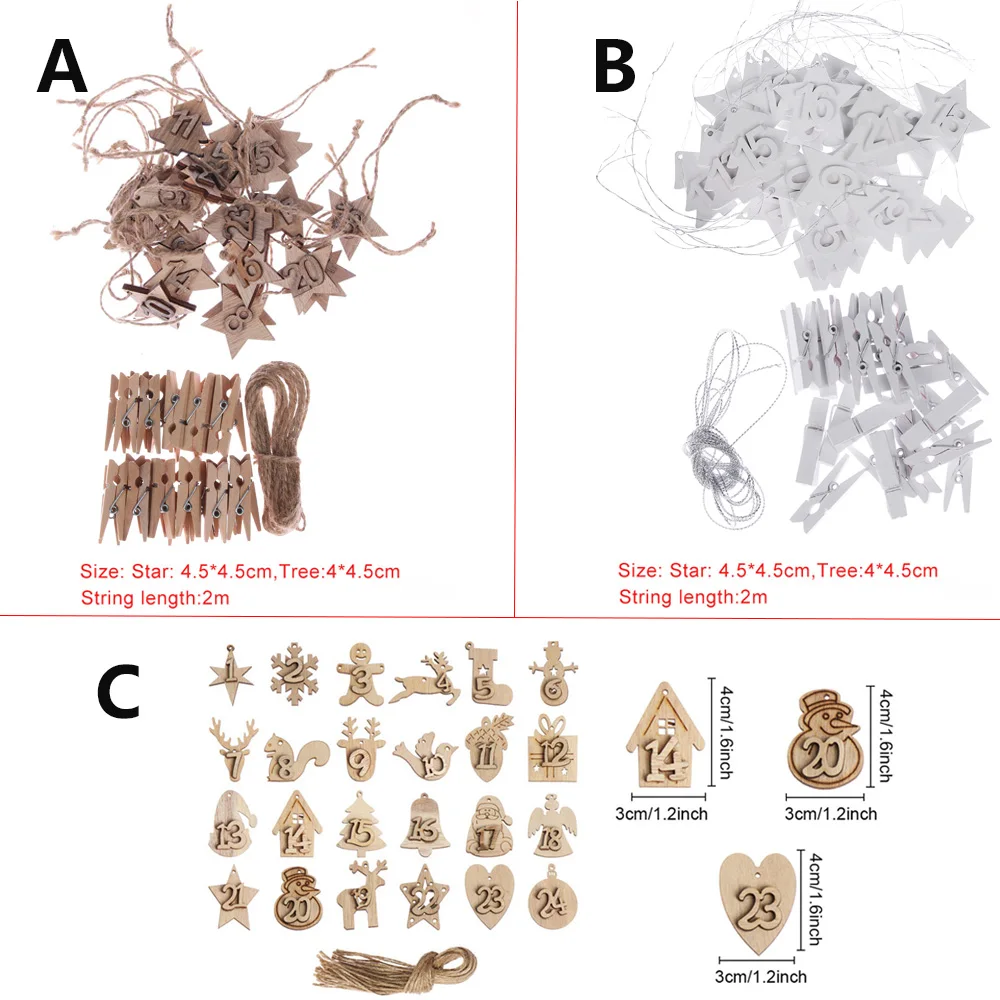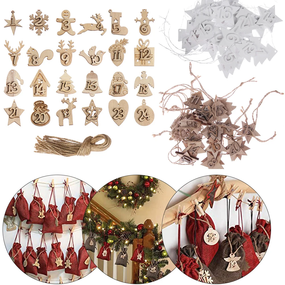 24 DIY цифры рождественский Адвент календарь деревянный кулон рождественские подарочные пакеты с цифрами этикетка календарь обратный отсчет подвесные бирки