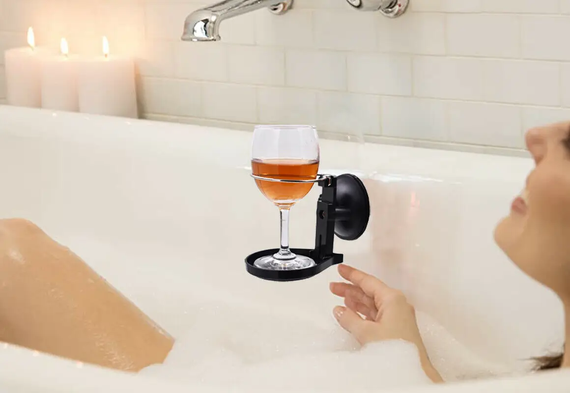 100% Brand new and quality. Quantity : One cup holder with strong suction cup - No wine, No glass. Strong Suction Cup - our suction cup is different from others. Hold up to 7 LBs. when applied properly to a nonporous surface . Ideal for glass, mirror, and glazed tile. Easy to use - You can press it and then it sticks to the bathtub or the glass firmly. Up to 2.7" Diameter - The cup holder will hold regular wine glass and beers. Brand new, updated design with a sleeker appearance. Best gift list.
