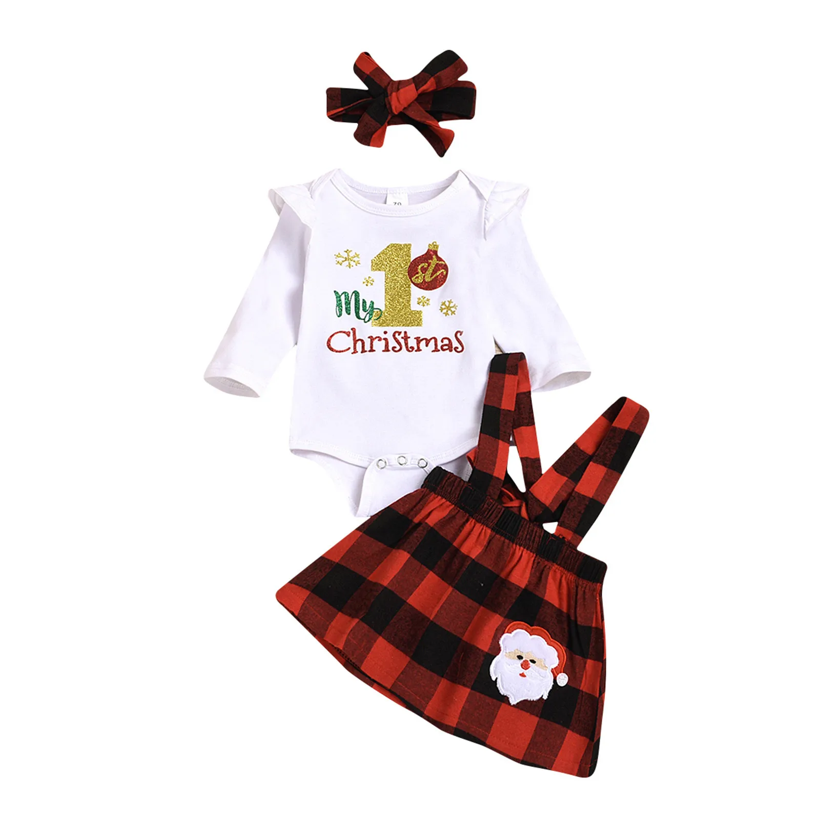 0-24Months, для младенцев, для новорожденных, для маленьких девочек, рождественские наряды, в клетку, с принтом комбинезон юбка Набор для волос תינוקות בנות и праздников для девочек, детские рождественские M4