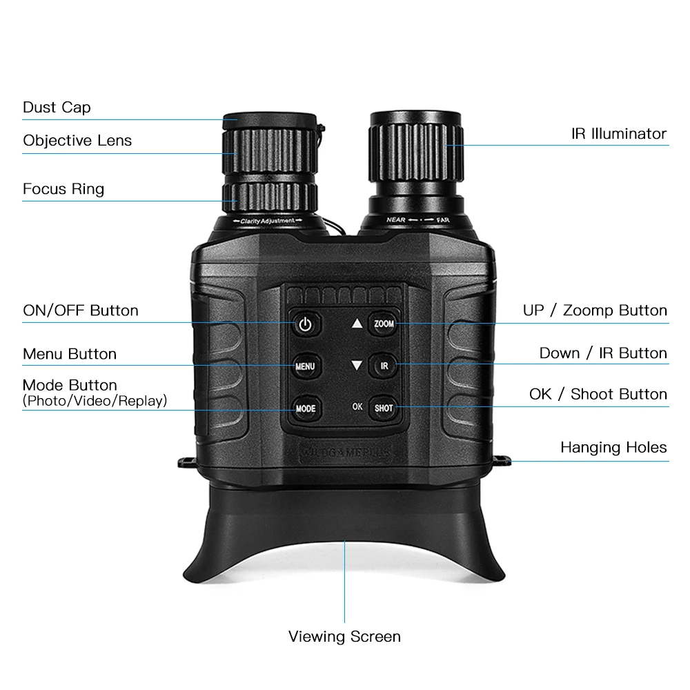 Это цифровое ночное устройство предназначено как для дневного, так и для ночного использования. Он имеет несколько функций, таких как фото, видео и воспроизведение. Оптический зум X20 и цифровой зум 4X позволяют четко просматривать объекты. С помощью специального инфракрасного осветителя пользователь может видеть дальнюю цель до 500 метров в полной темноте. Он идеально используется для кемпинга, пеших прогулок, спелекания, наблюдения за животными и других ночных мероприятий.