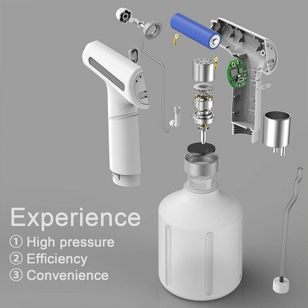 4. Встроенный аккумулятор 2000 мАч, с помощью USB для зарядки. Мощный Электрический пульверизатор имеет отличный Срок службы батареи. Светодиодный индикатор расположен на кончике насадки и будет мигать при зарядке. После того, как светильник катор мигает, его можно полностью зарядить. Обязательно полностью зарядите перед использованием.