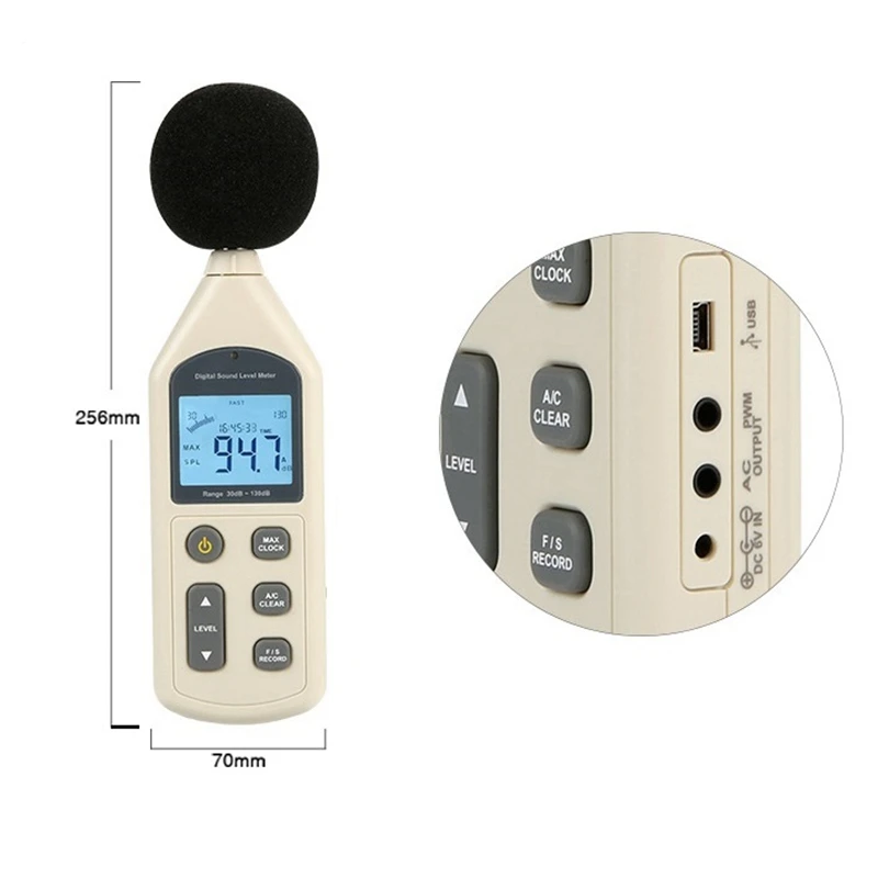 Диапазон измерения: 30 ~ 130dBA, 35 ~ 130dBC
