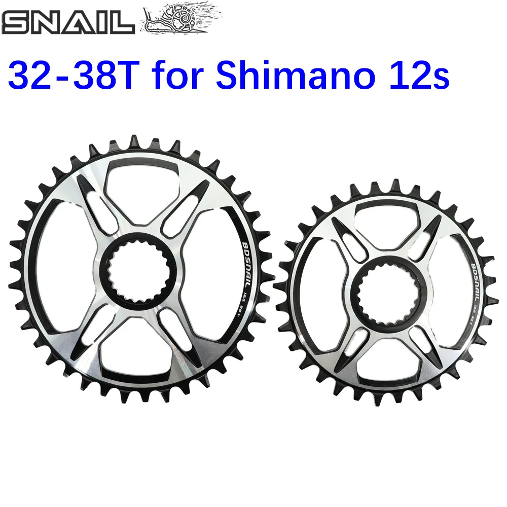 Звездочка с прямым креплением Snail для 12-скоростного шатуна shimano с прямым креплением. Изготовлен компанией alu 7075 и обработан ЧПУ. Технология Hollow tech делает его легким, но жестким.