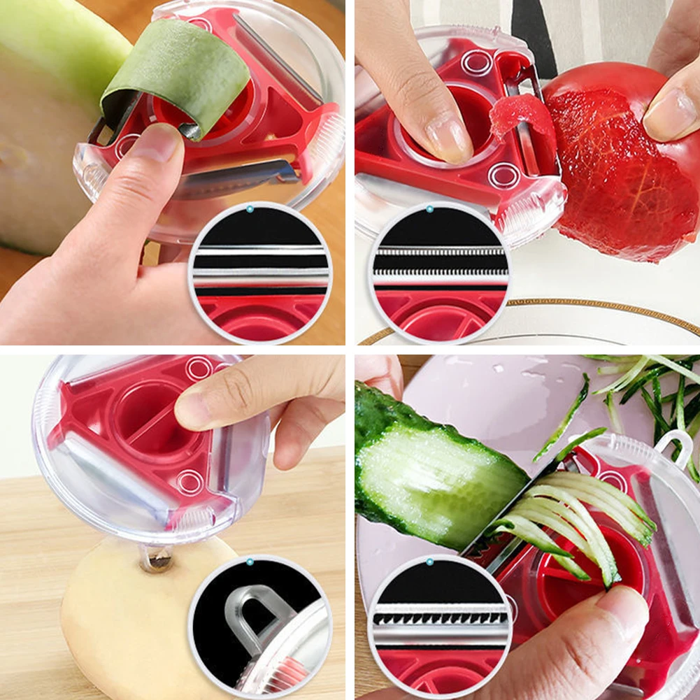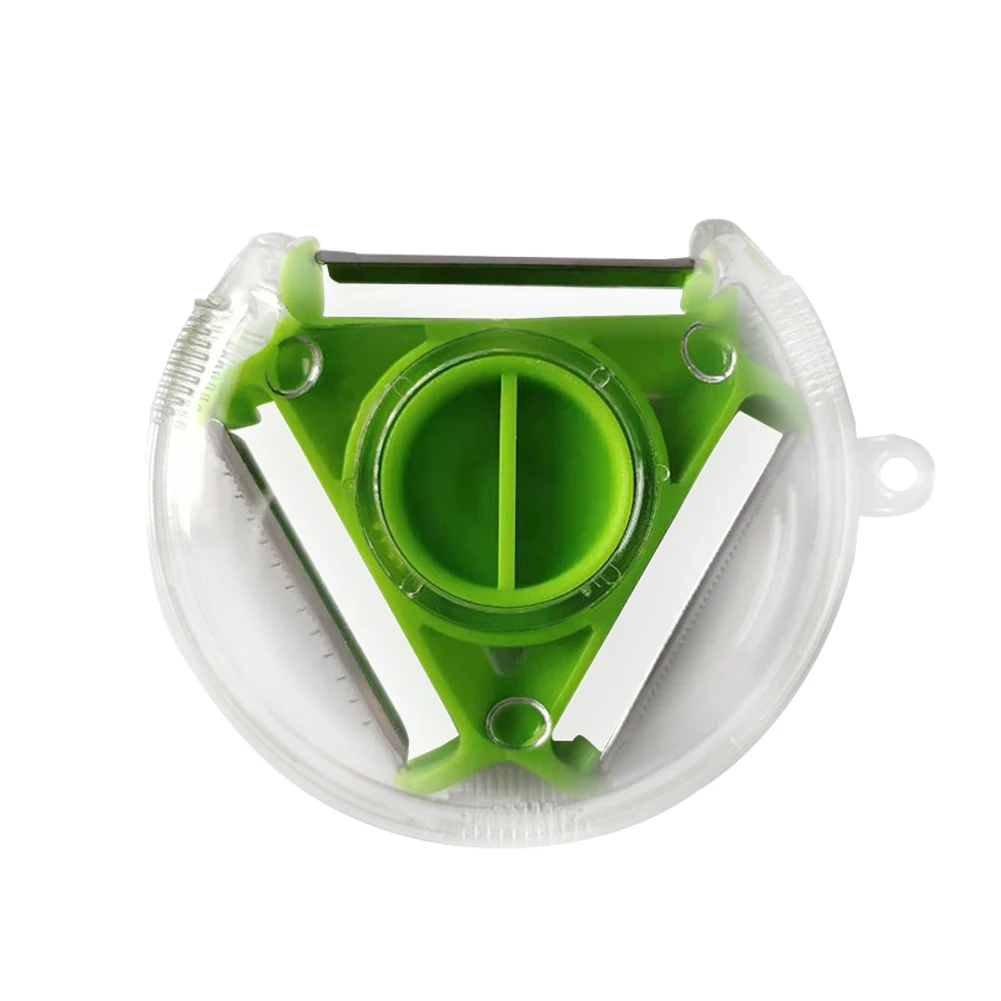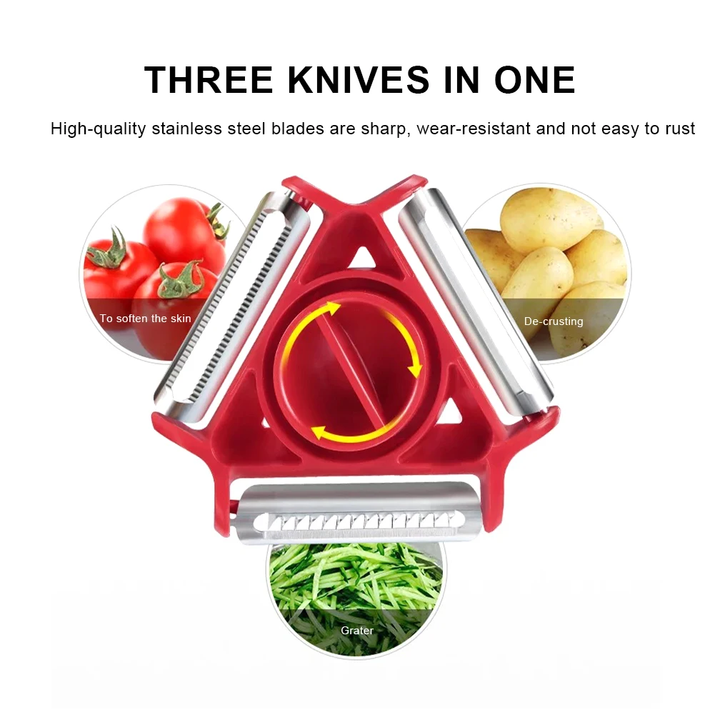 * 1. 3 в 1 дизайн: Овощечистка имеет три лезвия. Вам нужно только изменить кнопку, и вы получите три разных лезвия. Каждое лезвие должно быть помещено в нужное место. Подходит для мягкой кожи, твердой кожи и измельчения.