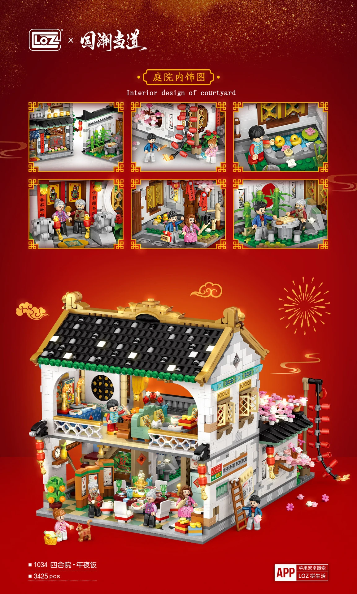 Новый лоз мини-блоки Китайская традиционная культура Весенний фестиваль/Новогодний ужин/Образование/танец дракона льва/chinatown1034