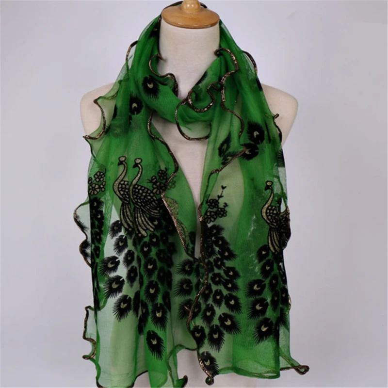 Новый дизайн женский шифоновый павлиньи перья цветы вышитый кружевной стильный шарф длинный мягкий платок женский шарф