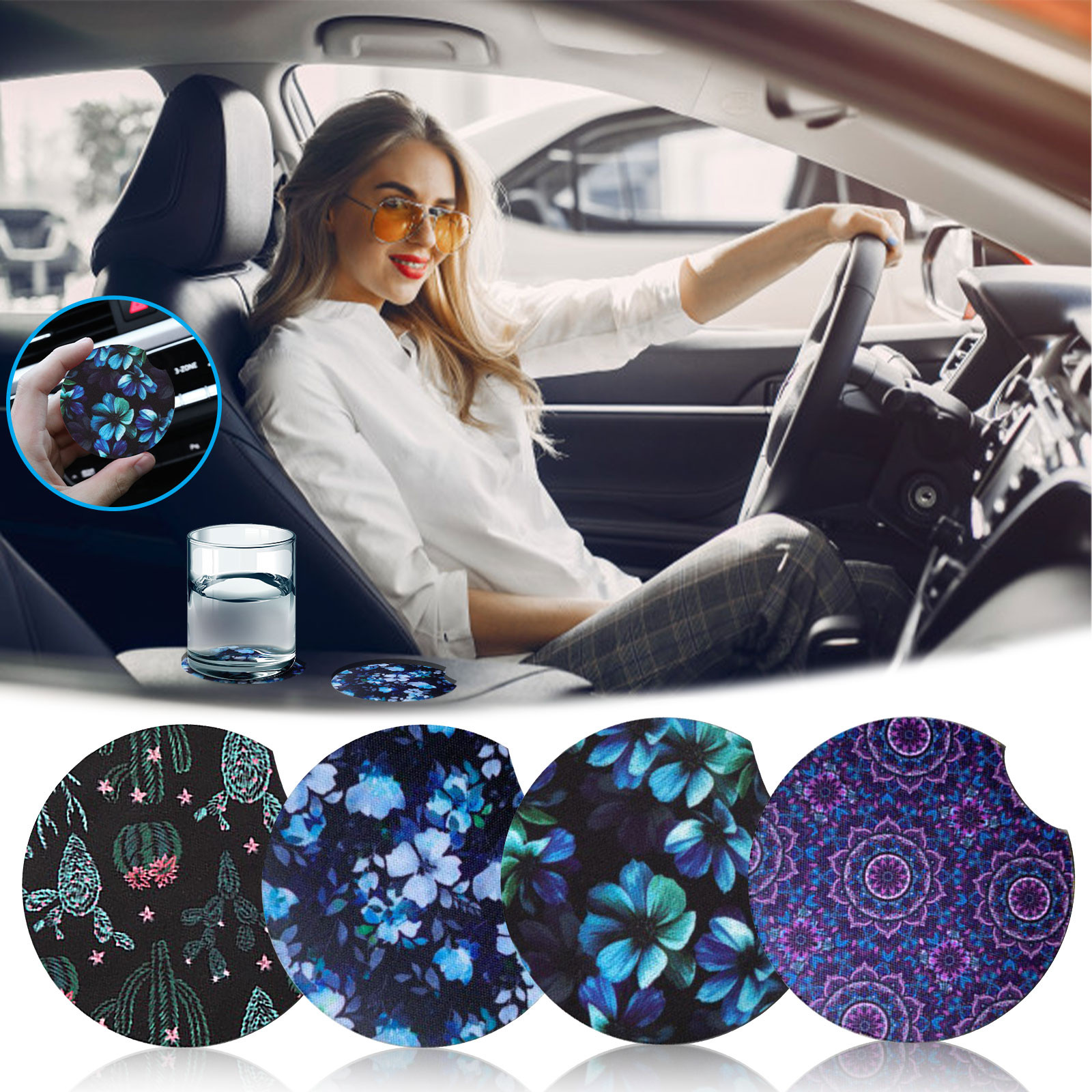 [Идеальные подарки] подставки для автомобильных чашек подходят как для повседневной жизни, так и для путешествий на открытом воздухе, отлично подходят для подарка на новый автомобиль, для новоселья, дней рождения и нового года. Удивительный подарок для женщин, девочек. 100% Совершенно новый и высокое качество.Материал: неопрен