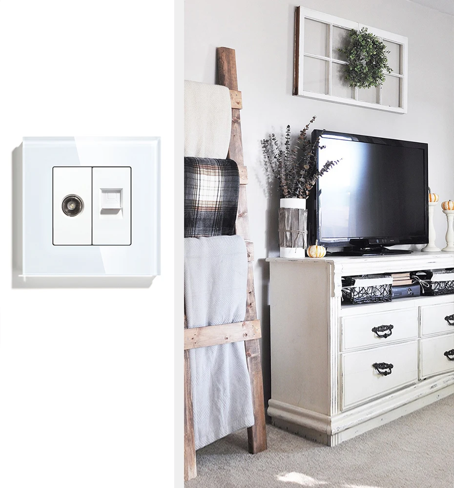BSEED TV компьютерная настенная декоративная Розетка с двойным ТВ-разъемом для ПК Роскошная стеклянная белая черная Золотая панель 86 мм