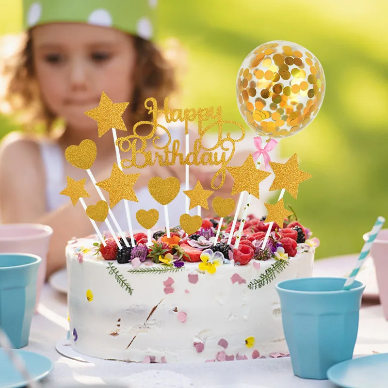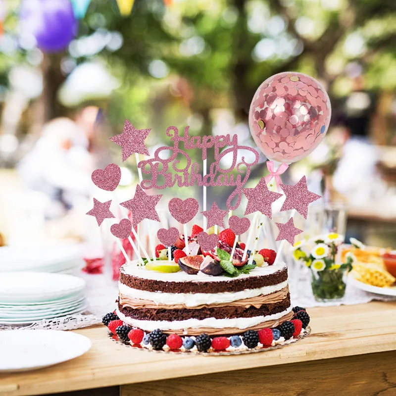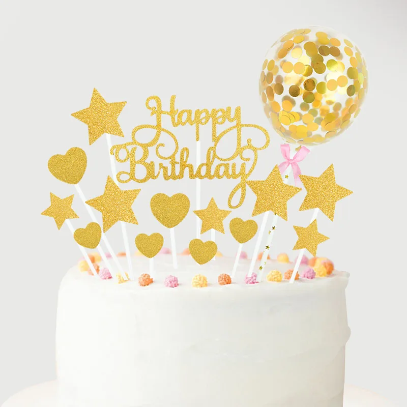 Набор содержит: = 1 * С Днем Рождения + 7 * звезды + 6 * сердечки + 1 набор воздушных шаров)