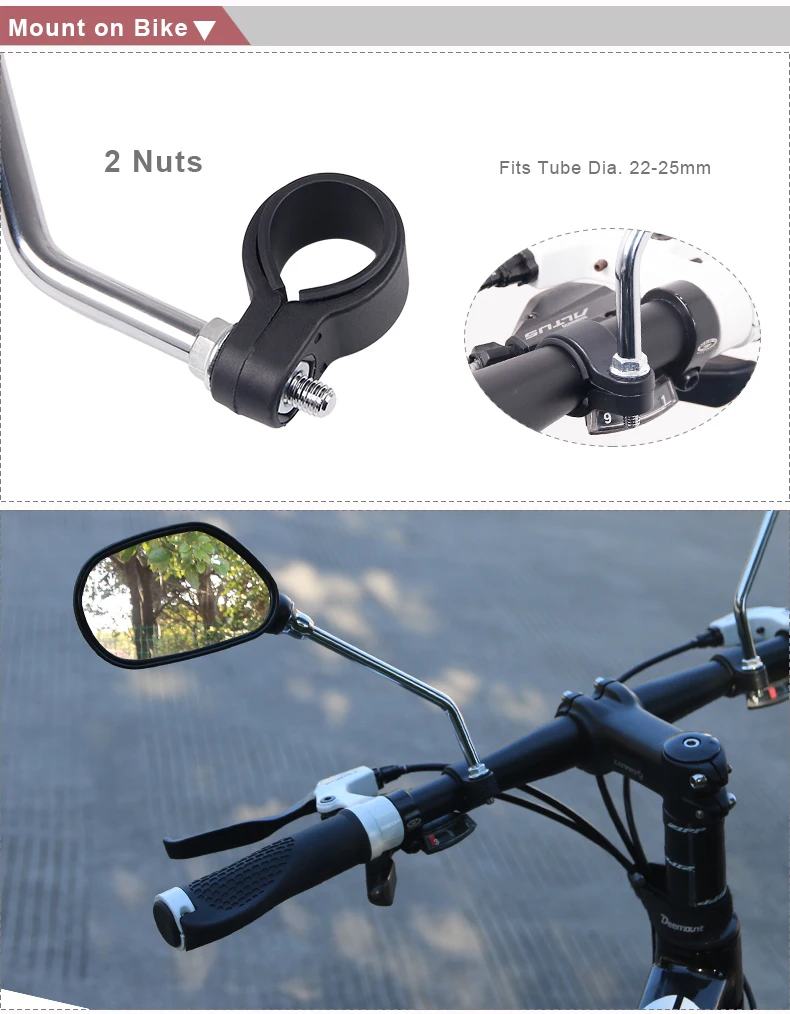 Для использования на электровелосипеде, скутере или мотоцикле, пожалуйста, обратите внимание, что крепежный болт на этом зеркале M6.