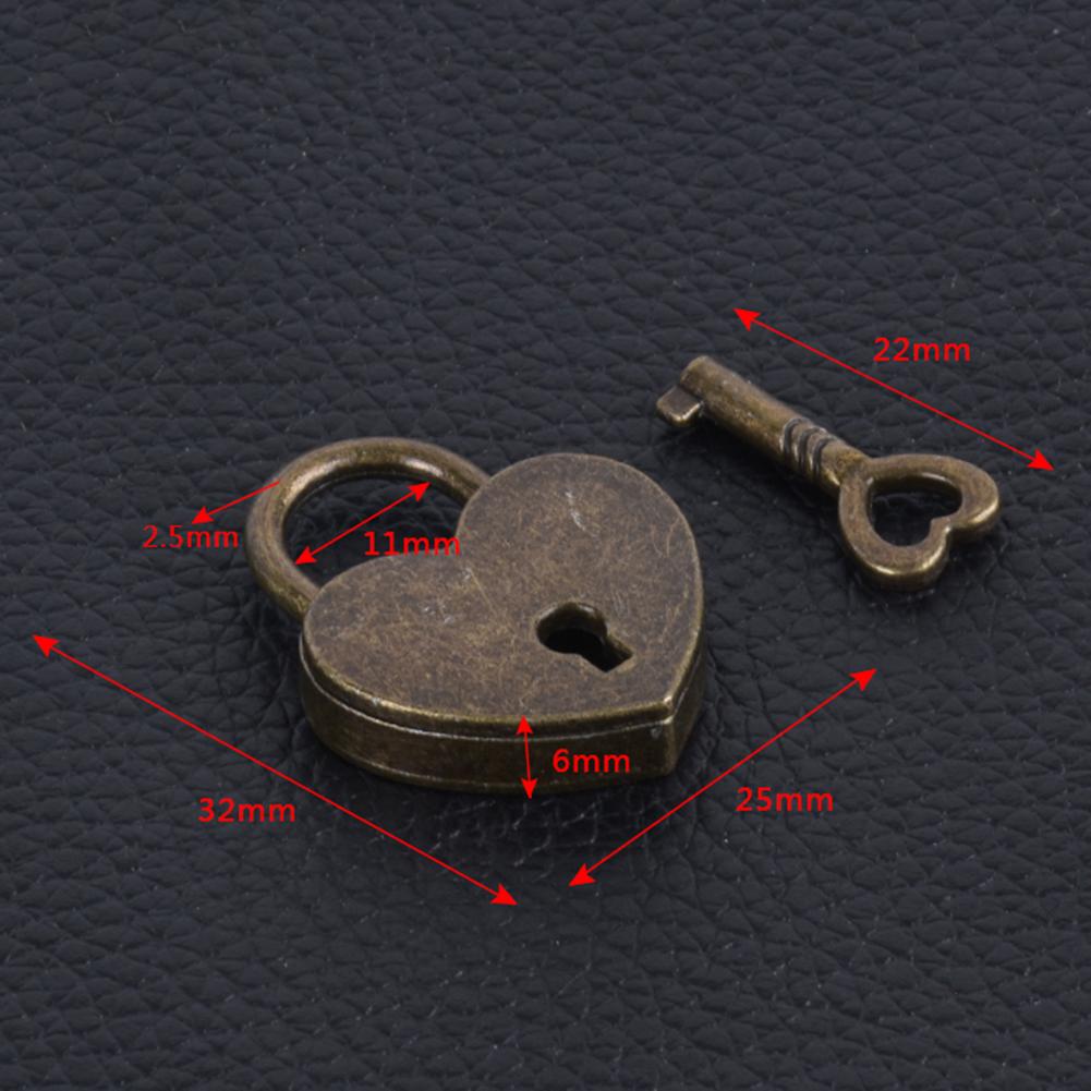 New Vintage Heart Shaped Mini Padlock Peach Heart Lock Bag Travel Suitcase Case Case Key Lock Jewelry Padlock