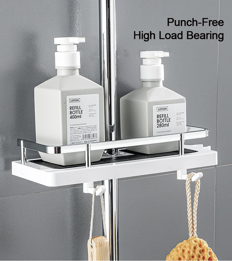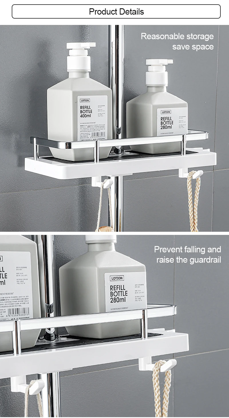 Стеллаж для хранения душа, органайзер, полки для ванной, держатель, лоток для шампуня, одноуровневый, без сверления, подъемный стержень, держатель для душевой лейки