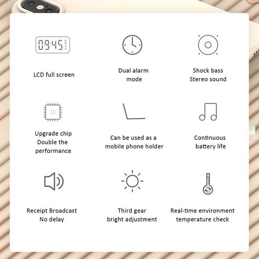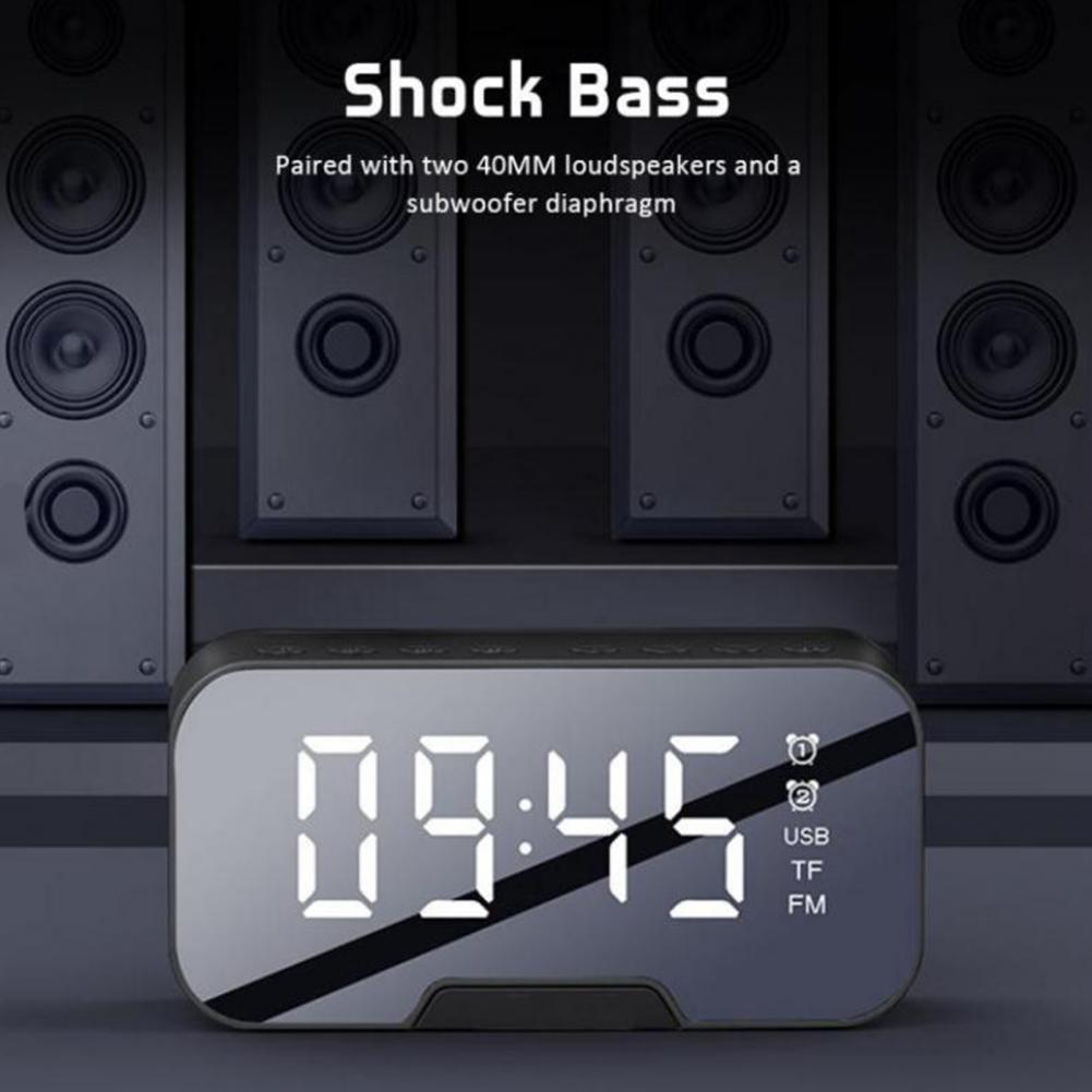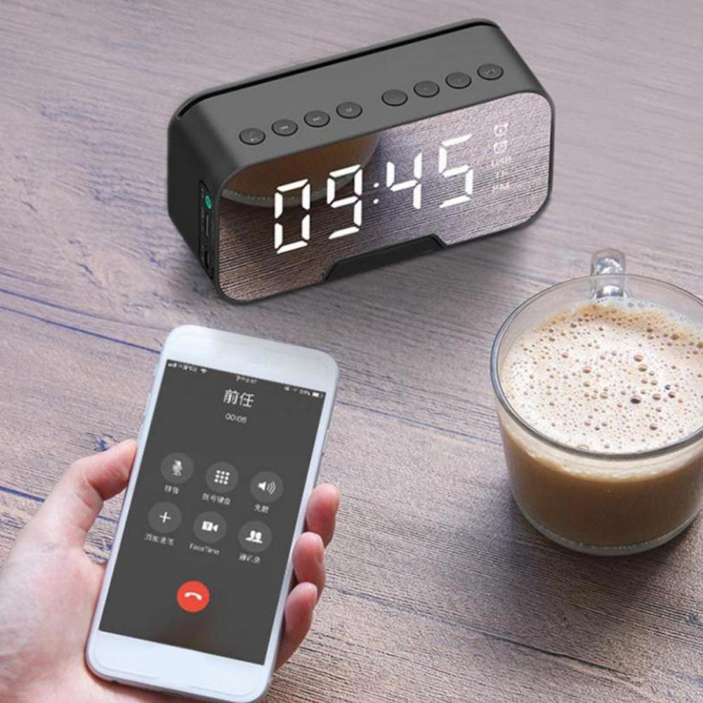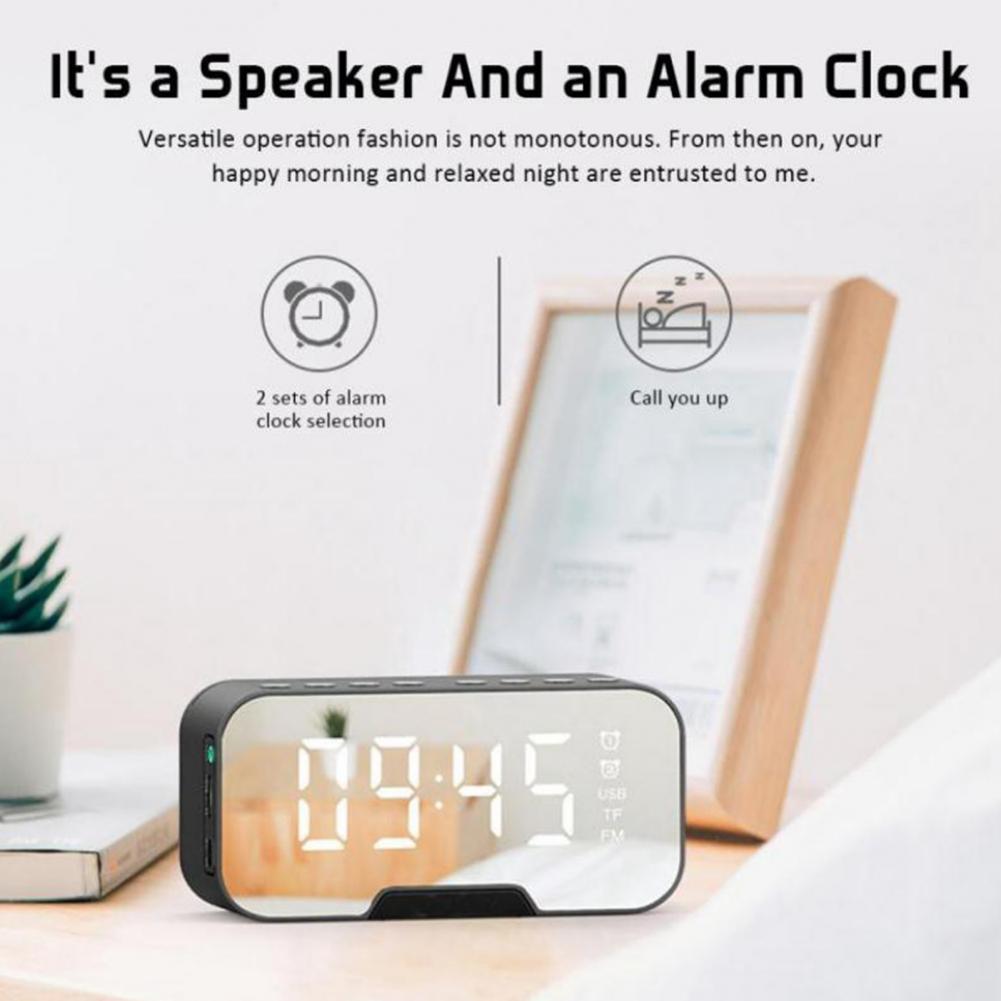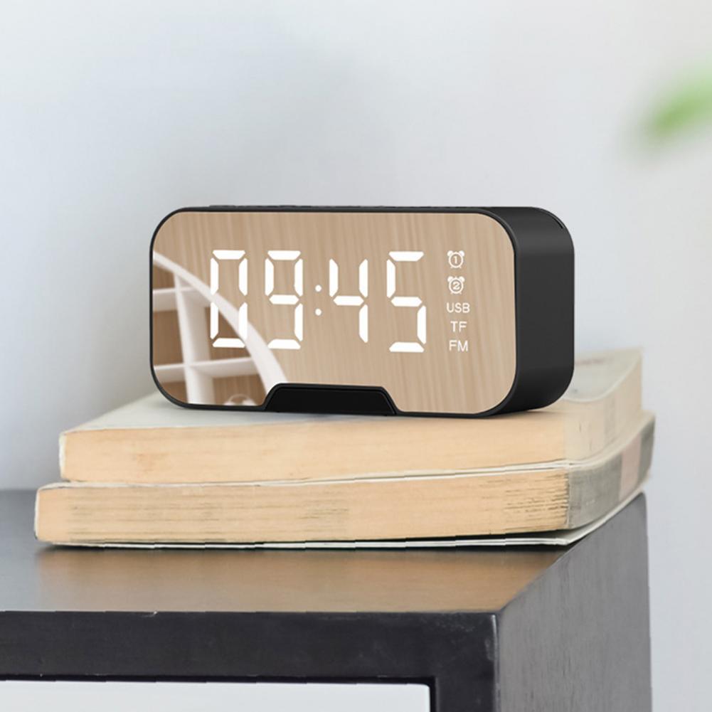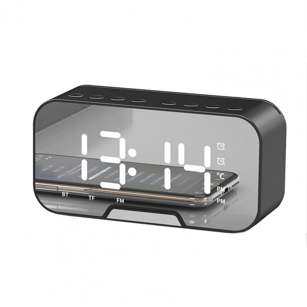 Bluetooth-динамик, FM-радио, светодиодный зеркальный Настольный будильник с функцией повтора голоса