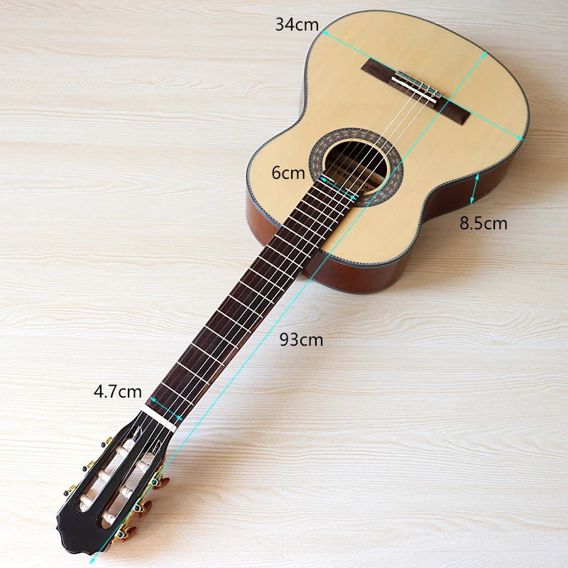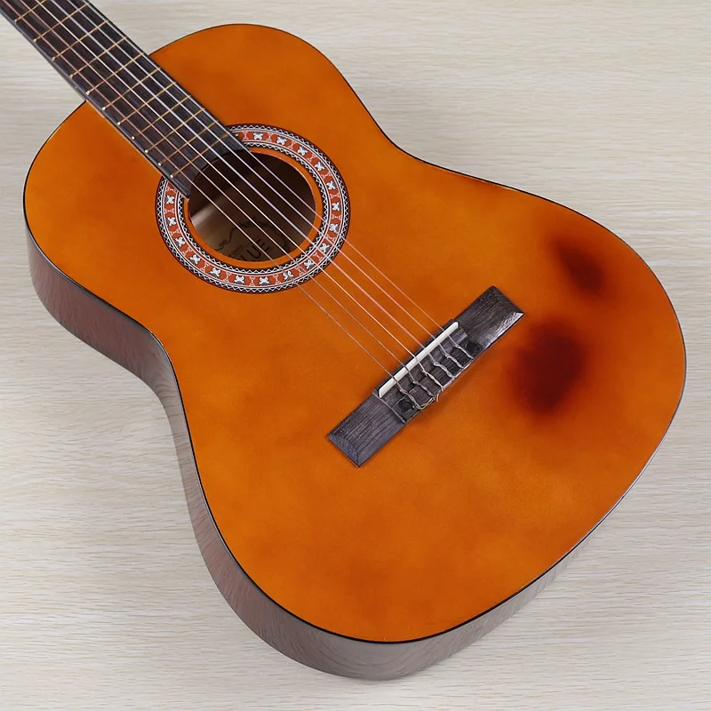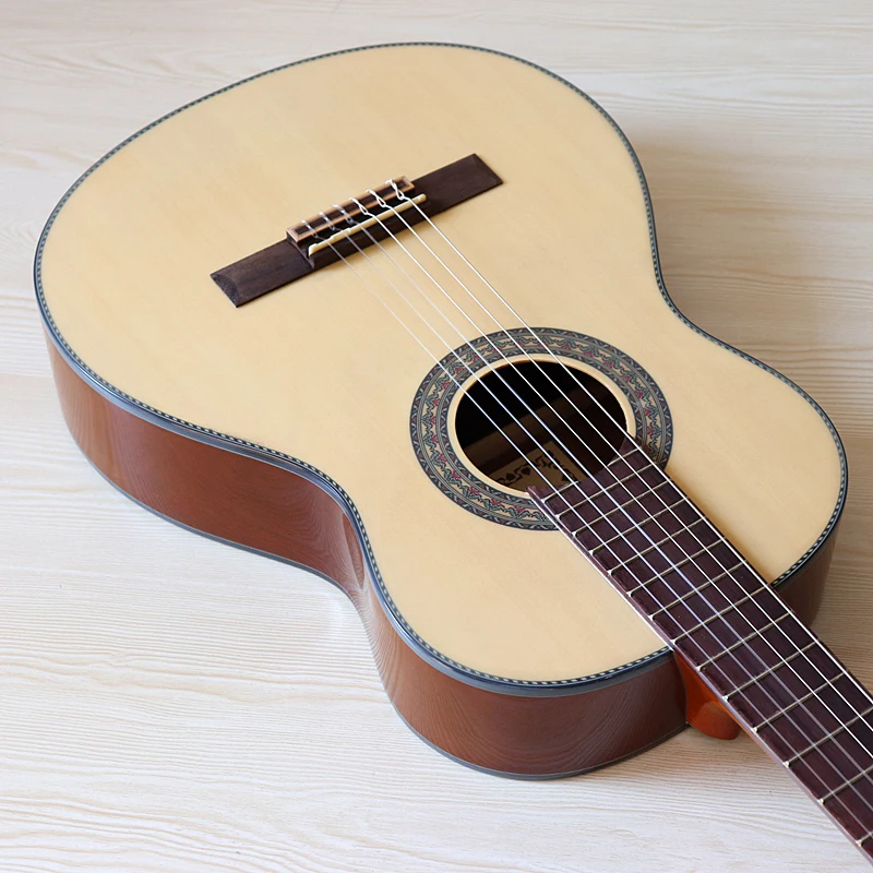 В наличии 36 дюймов Ель дерево топ Классическая гитара естественный цвет 6 строка Высокое глянцевое покрытие мини классическая гитара с извинения, но небольшие дефекты