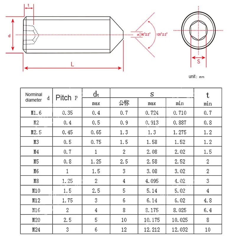 M2(2 мм)/M2.5 (2,5 мм) / M3 (3 мм) / M4 (4 мм)/M5(5 мм)/M6(6 мм)/M8(8 мм)/M10(10 мм)/M12(12 мм)