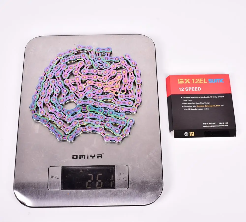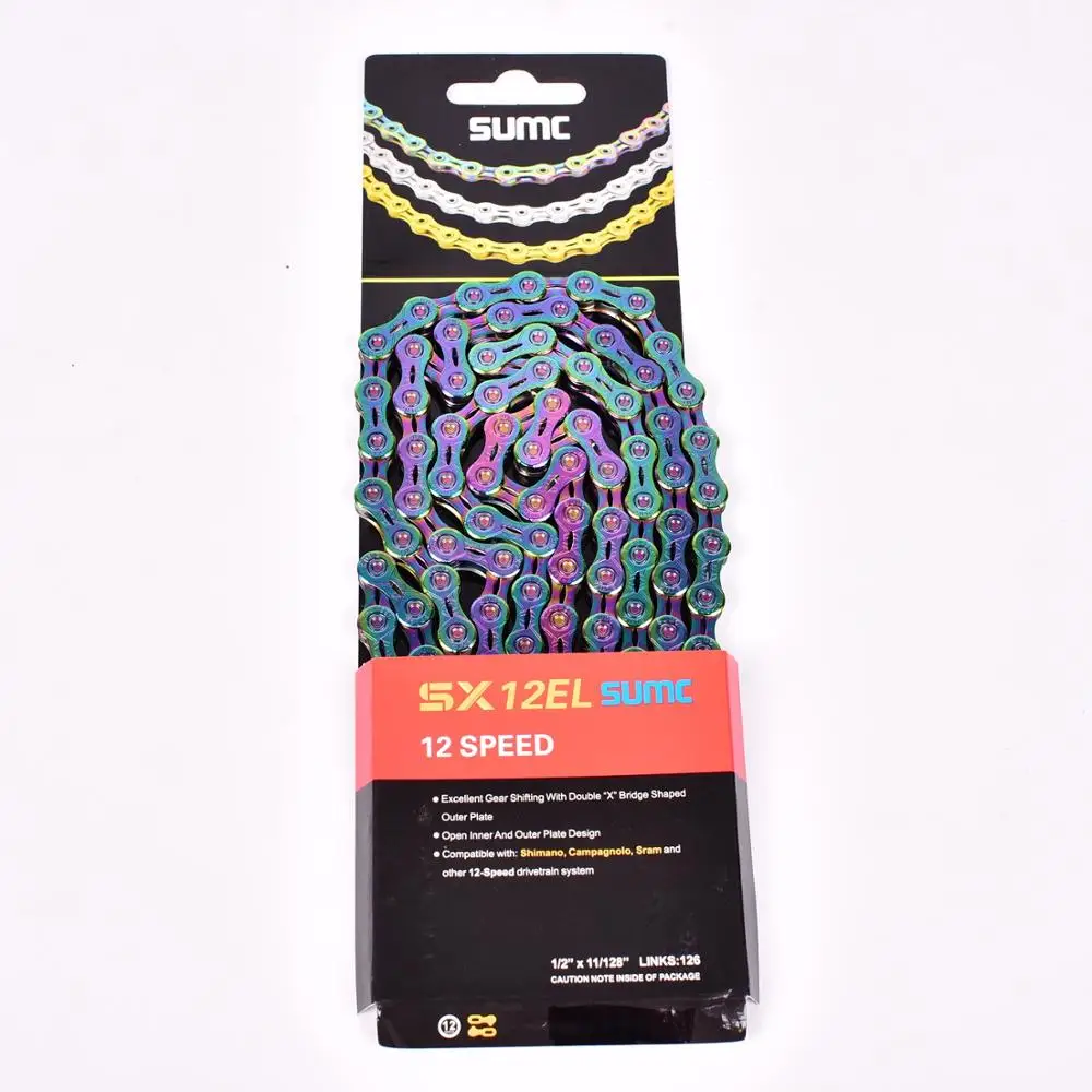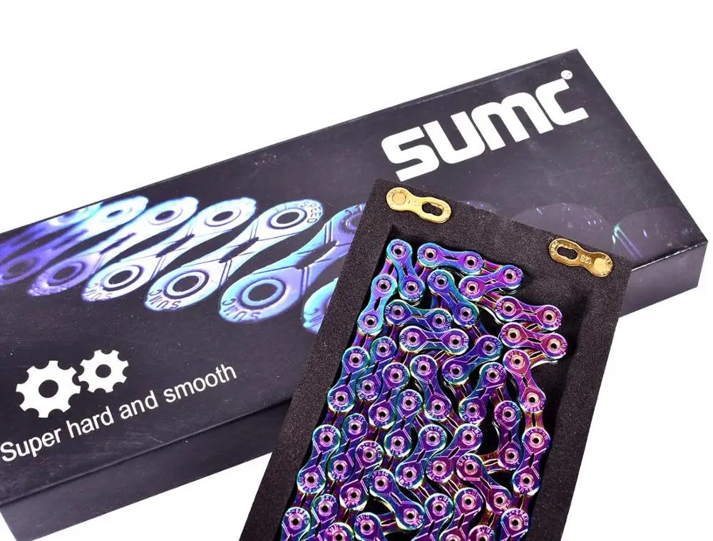 Велосипедная цепь SUMC совместима с Shimano (M9100, M8000, M6000 и M610), Campagnolo, SRAM, CP, Micro-turn, Suntek и Blueprint. Его можно использовать на горных велосипедах, дорожных велосипедах и складных велосипедах.