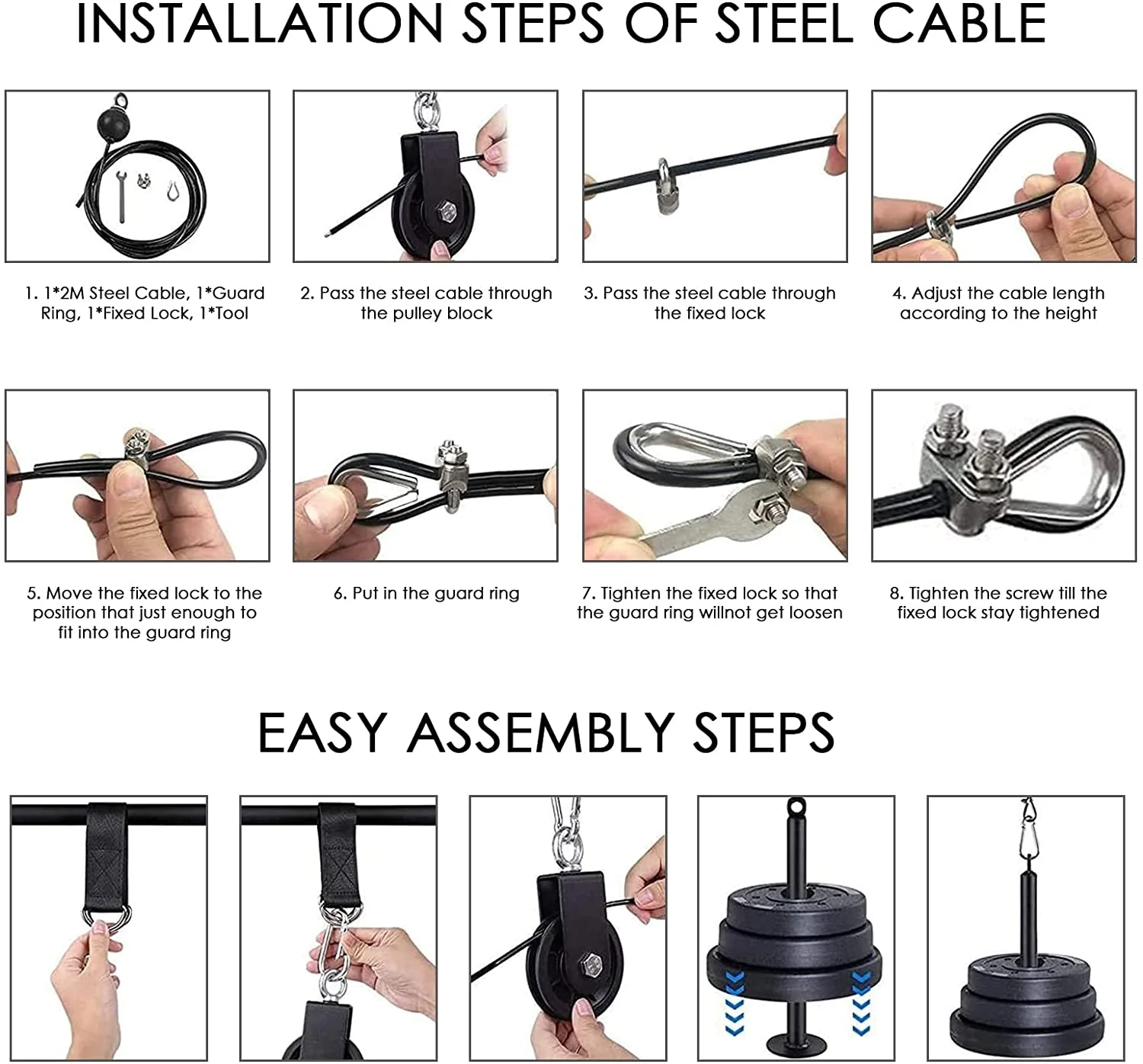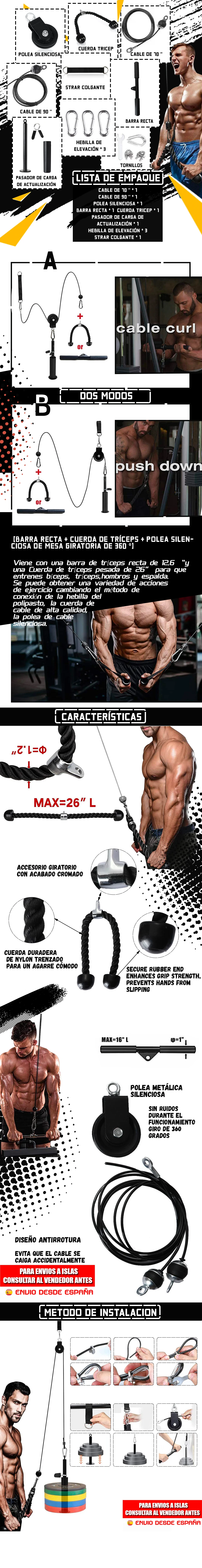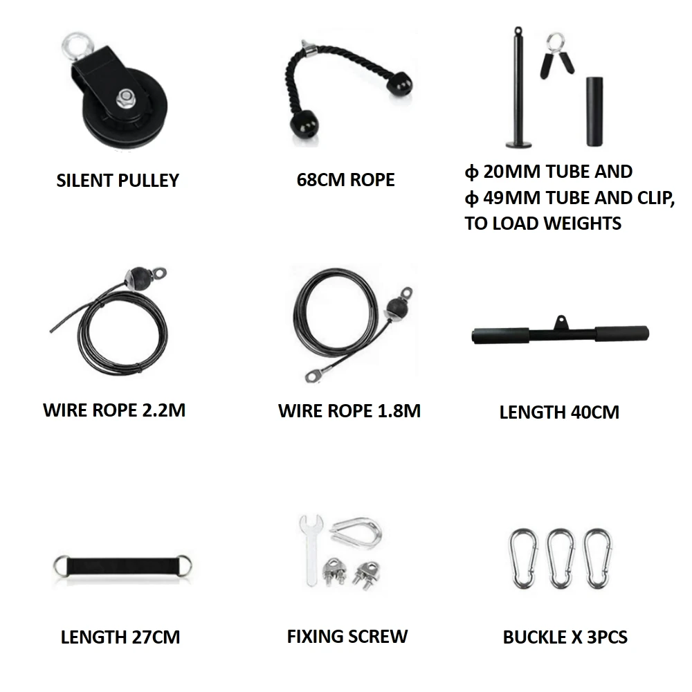 1 нейлоновая Тройная мышечная веревка1 х Соединительная Пряжка 3 шт.1 х шатунПоворотный шкив 360 °-1 шт.1 x ремни безопасности (28 см)1 х Регулируемый проволочного каната 1,8 м1 x Регулируемый трос 2,2 м1 x регулируемые винтовые аксессуары.1 x Диаметр трубки 20 мм1 x Диаметр трубки 48 мм и ручка Система фитнес-шкива-лучшее фитнес-оборудование для упражнений, бицепсов, трицепсов, повышения прочности предплечья, запястья, повышения сопротивления и взрывной силы Домашние тренажерные тренажеры могут тренировать бицепсы, трицепсы, плечи и задние мышцы с прочными прямыми стержнями и тройными мышцами. Шкив тренажерный зал Регулируемый трос без шума 360 ° поворотный шкив, присоединяйтесь к соединительной пряжке, чтобы убедиться, что система шкива стабильная и тихая. Шкив системы машина позволяет поддерживать ваш идеальный вес и прочность