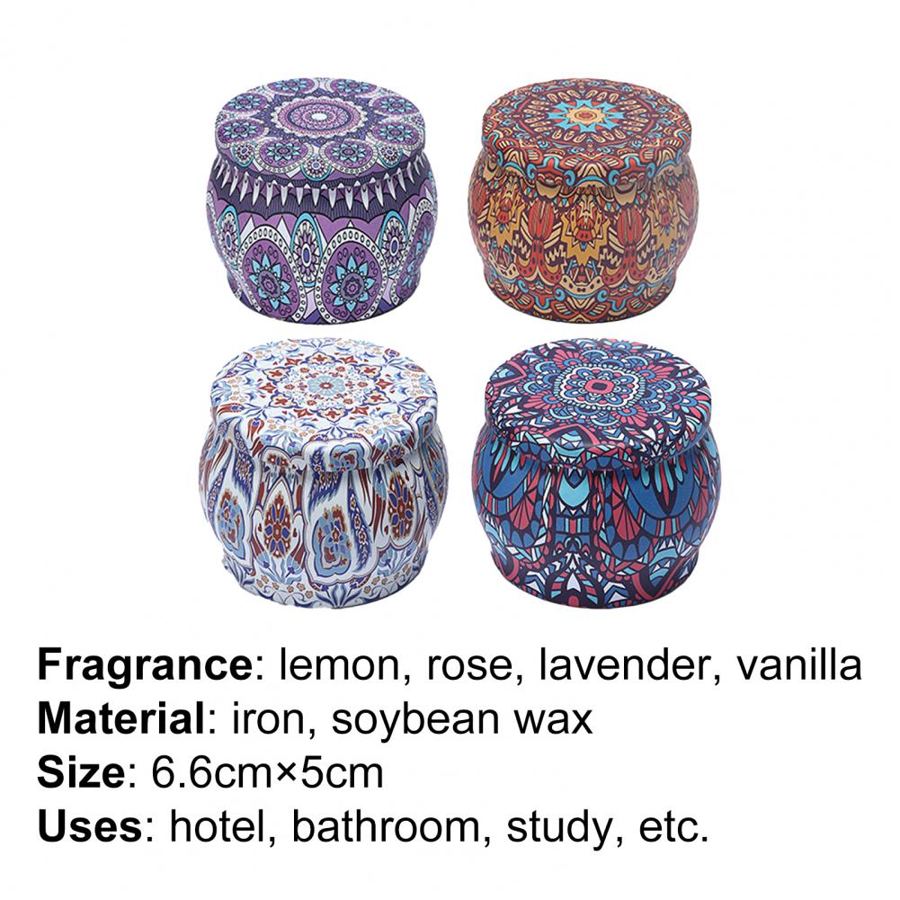 Ароматическая свеча изготовлена из соевого воска и железа. Эти ароматы свечей содержат лимонный, розовый, Лавандовый и ванильный 4 разных аромата.