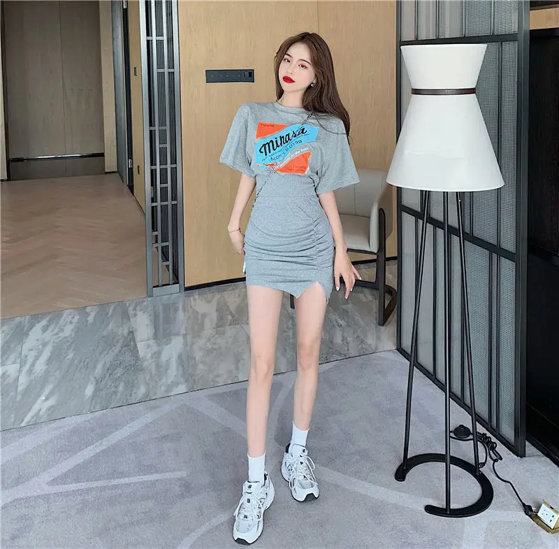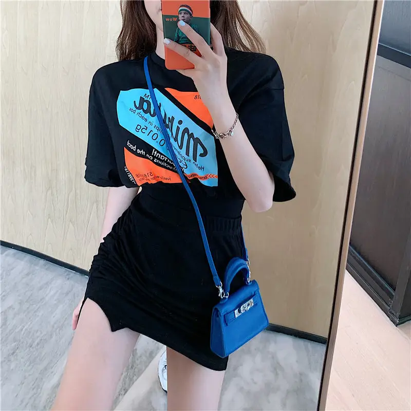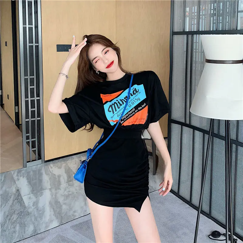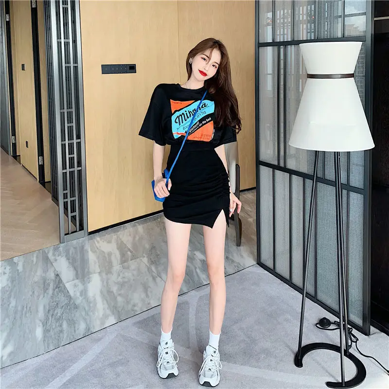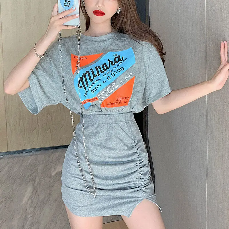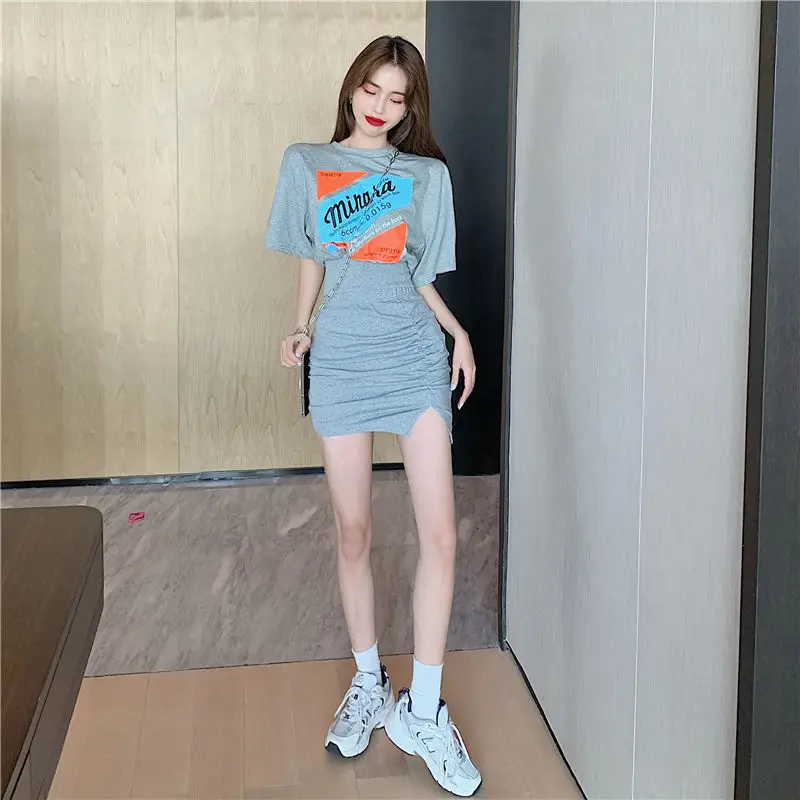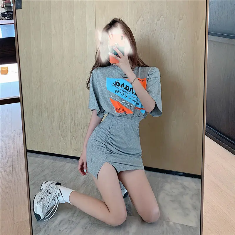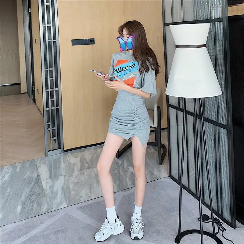 Комплект из футболки и платья с принтом, летняя юбка и топ женский комплект 2 шт. в стиле KPOP, короткие комплекты 2021, студенческий комплект из двух предметов с юбкой, юбка-плиссе