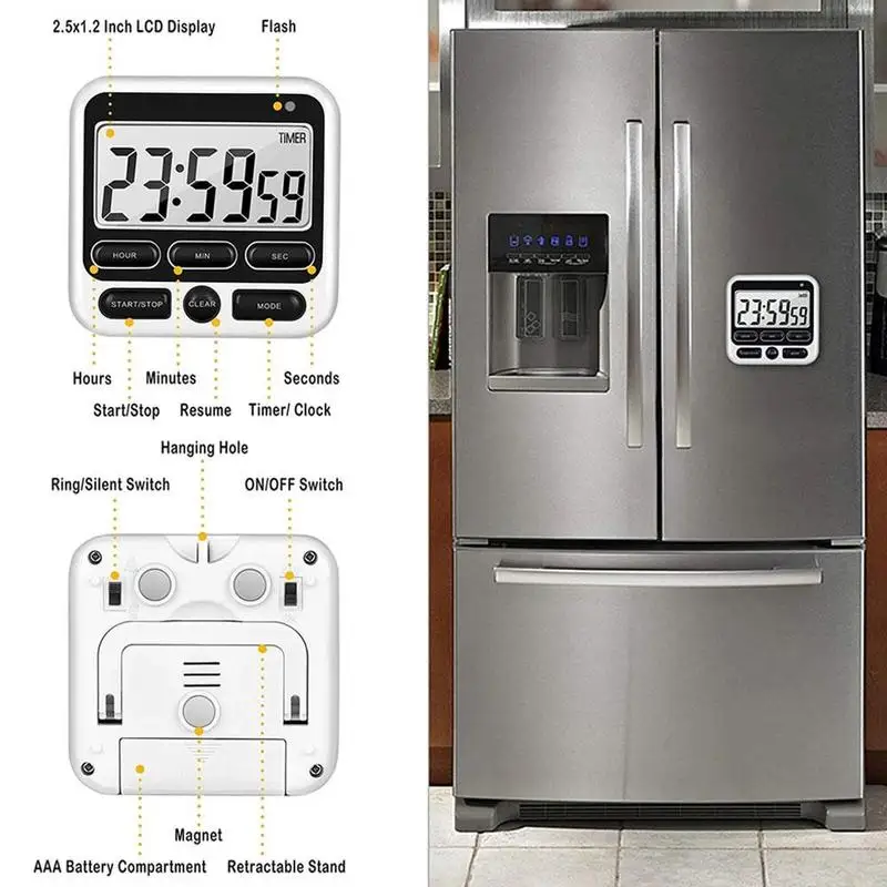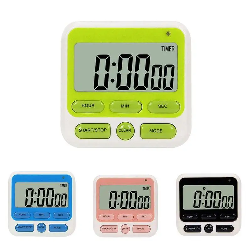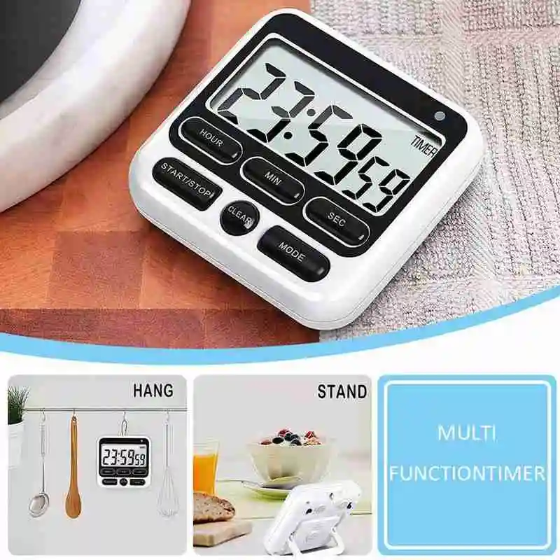 Цифровой кухонный таймер имеет 3 режима: таймер, будильник и режим часов. Вам нужно только нажать кнопку mode, чтобы изменить режим, прост в эксплуатации. Он используется для обратного отсчета и обратного отсчета от 1 секунды до 24 часов, что делает его идеальным таймером для различных видов деятельности.